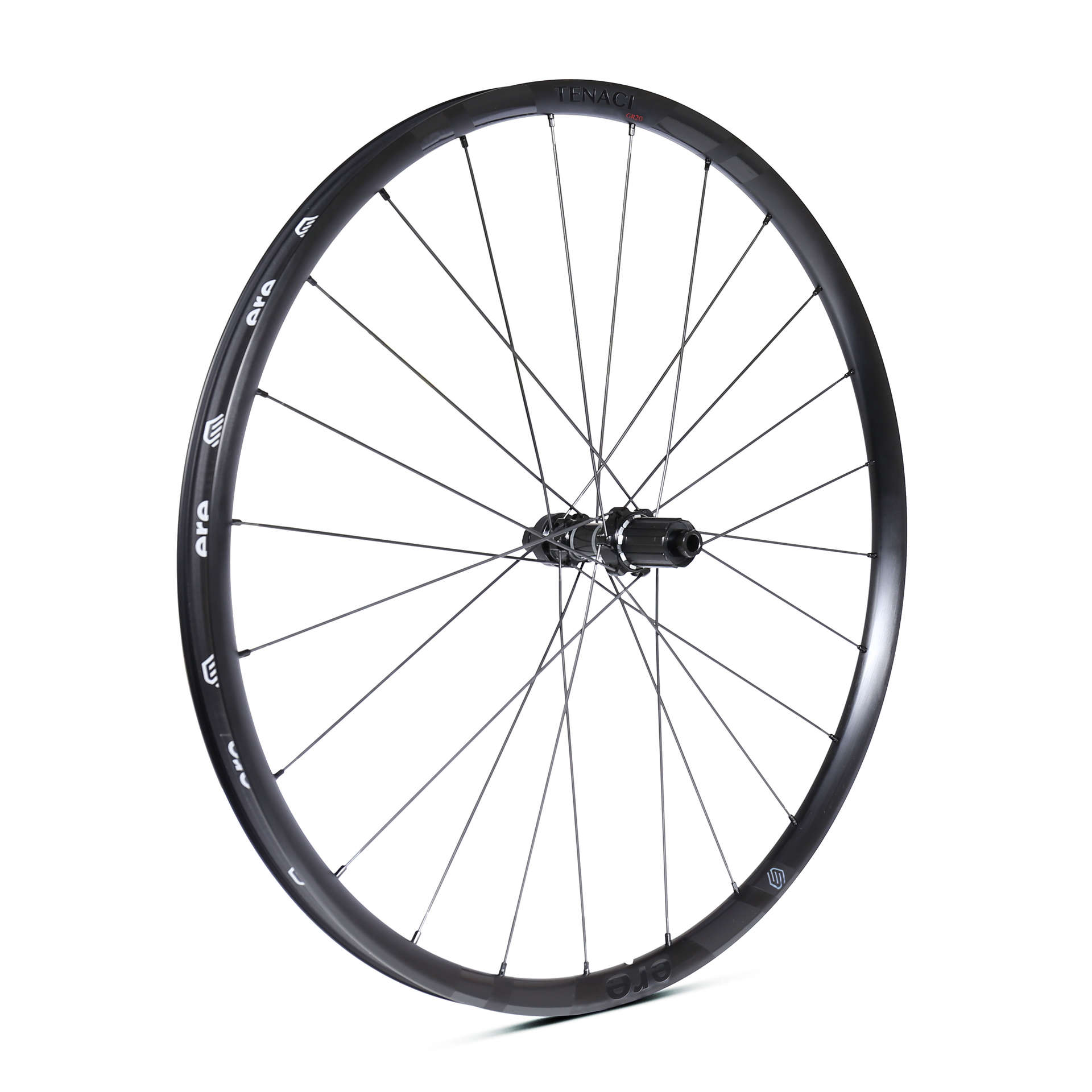De Tenaci GR20 wielen zijn de nieuwste telg in het assortiment van Ere Research, een Nederlands bedrijf dat zich specialiseert in banden, wielen en tal van doordachte accessoires. De overige wielen in het gamma zijn een stuk smaller (17-19 mm) en bedoeld voor hooguit 36 mm (weg)banden. Deze Tenaci GR20 is duidelijk een gravel-specifieke wielset. De binnenbreedte van de velg bedraagt 24 mm en is geschikt voor banden van 35 tot 50mm. De velghoogte van de GR20 is met zijn 20mm wat aan de lage kant voor een gravelset. Dit lijkt echter een logische keuze omdat dit het comfort ten goede komt en de aerodynamica bij gravelritten van minder groot belang is. De naven van de wielen zijn erg marktconform. De inbouwbreedte is 100mm (voor) en 142mm (achter) en ze zijn voorzien van 12mm steekassen en centerlock montage voor schijfremmen. Alle lagers zijn afkomstig van het Japanse EZO. Dikke platte straight-pull (aero)spaken (24 stuks) zorgen voor de verbinding tussen naaf en velg.