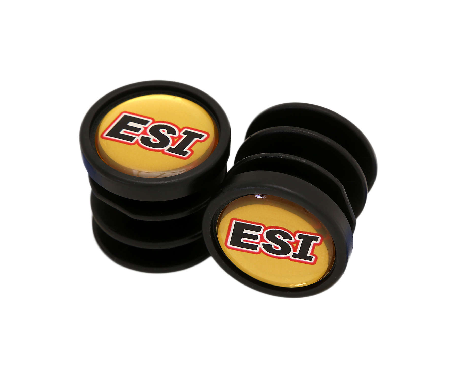 Een van de pluggen die bij de grips zaten was defect na het demonteren en weer monteren. Dit setje losse pluggen maken dat je niet een set nieuwe grips hoeft te kopen of een alternatieve plug moet plaatsen. Het gele deel met het logo is een rubber achting materiaal.