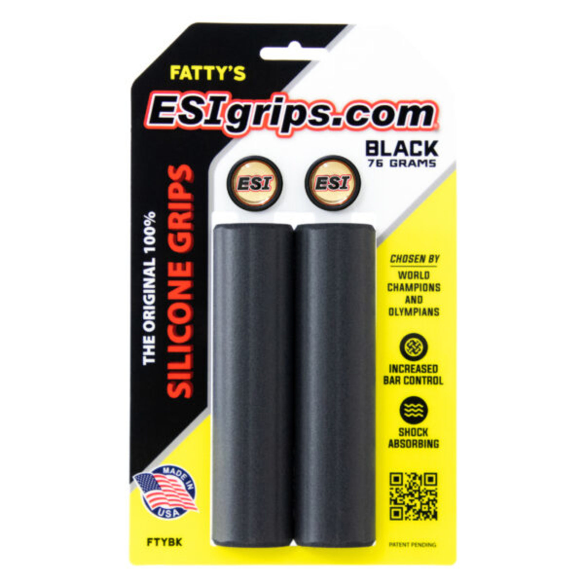 Fatty’s is de serie dikste handvatten van ESI Grips, Fatty’s hebben een dikte van 35 mm. Deze handvatten hebben 8 pluche kussens om de schokabsorptie en grip te optimaliseren. De grips passen op de meeste MTB-sturen, ze zijn gemaakt voor 22 mm. sturen en geschikt voor toepassingen tot 19 mm. De Fatty’s zijn gemaakt van 100% siliconen en zijn latex- en rubbervrij. De barpluggen worden meegeleverd, zodat je stuur in één montage klaar is.