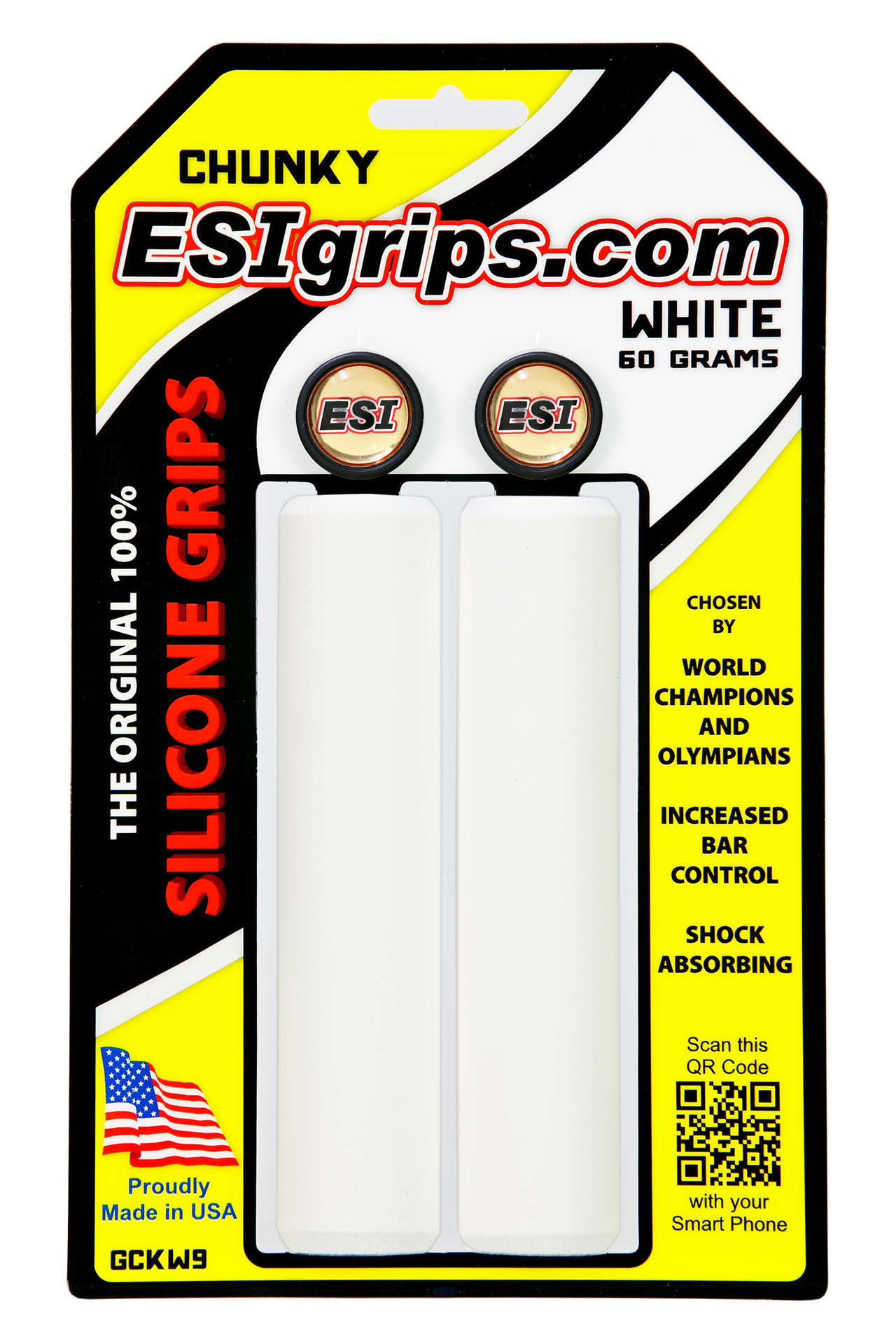 Deze ESI Grip MTB Chunky 32mm handvatten bieden zeer veel grip en comfort dankzij de speciale siliconen compound. Oneffenheden in de ondergrond worden gedempt waardoor je met veel vertrouwen en controle de bochten kunt bedwingen. De grips wegen slechts 60 gram en hebben een lengte van 13 cm.