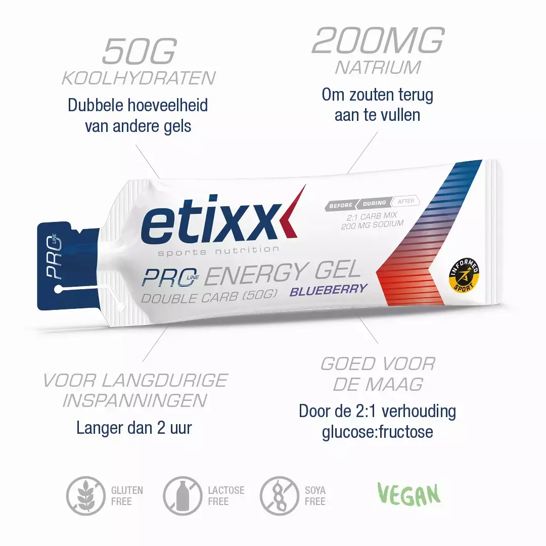 Specificaties Etixx Double Carb Energy Gel Pro Line Blueberry 12 stuks