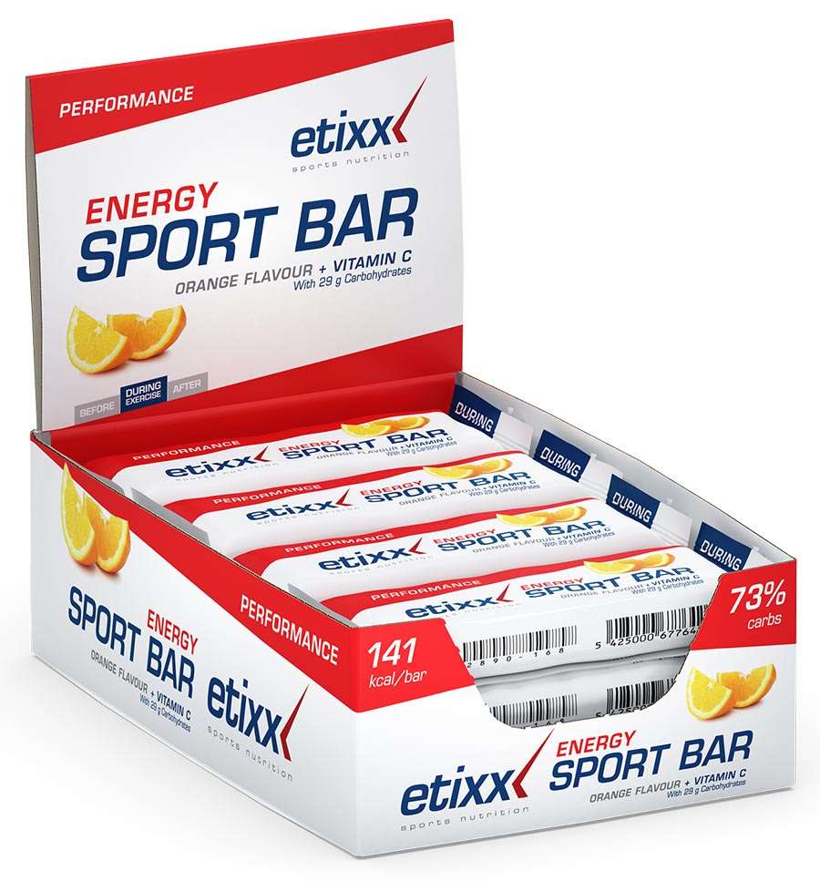 Deze energiereep van Etixx bevat koolhydraten voor een langdurige voorziening van voeding tijdens je inspanning. Ook als tussendoortje is deze reep uitermate geschikt. De reep bevat weinig vetten en vezels en is daarom licht verteerbaar. Ben je een duuratleet, een team- of racketsporter, een sporter die middellange inspanning levert of een explosieve sporter? Door het nuttigen van deze reep met sinaasappel smaak, kan je optimaal presteren.