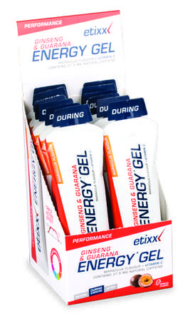 Deze Energiegel met ginseng en guarana geeft je lichaam en geest een ware energie boost. De gel wordt geleidelijk door het lichaam opgenomen waardoor een langdurig effect wordt gerealiseerd. De gel bevat daarnaast vitamine C en taurine en worden geleverd per 12 stuks. Dit product maakt deel uit van de Performance-lijn van Etixx. De voedingssupplementen binnen deze lijn zorgen voor een optimaal energieniveau zowel voor- als tijdens de sportieve inspanningen. De supplementen zitten boordevol vitamines en vormen een aanvulling op je dagelijkse voeding.