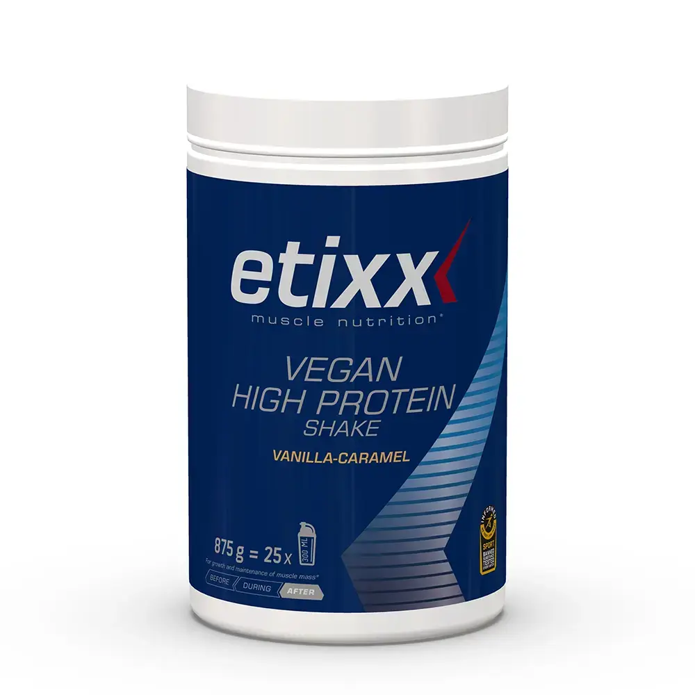 De High Protein Shake Vanille van Etixx bestaat uit erwteiwitisolaat en rijsteiwitconcentraat. Beide lactosevrije en vegan alternatieven voor wei-eiwitten. Deze vormen van eiwitten vullen elkaar perfect aan als het gaat om het aminozuur profiel waardoor ze samen een biologische waarde van 100% vormen. Dit betekend dat alle essentiële aminozuren aanwezig zijn. Deze eiwitten bevorderen de groei en het behoud van de spiermassa. De shake bevat geen toegevoegde koolhydraten, vetten of zout.