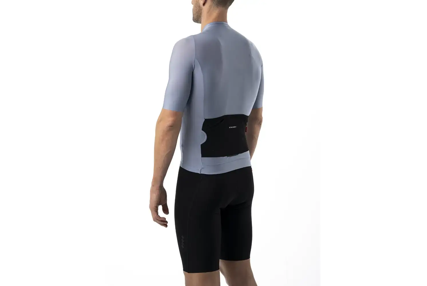 Het Etxeondo Alde Metalic Fietsshirt Korte Mouwen is ontworpen voor wielrenners die streven naar maximale prestaties, of het nu tijdens een zware solo-trainingsrit, een groepsrit met vrienden of een wedstrijddag is. Dit shirt combineert aerodynamica en spiercompressie om je te helpen in elke situatie te excelleren. Dankzij de Microsystem Performance-technologie biedt het shirt een optimale elasticiteit, een nauwsluitende pasvorm en een hoog ademend vermogen. De aerodynamische Free Cut mouwen sluiten aan als een tweede huid en hebben geen manchetten nodig, wat zorgt voor een gestroomlijnde look en maximaal comfort. De antislip tailleband houdt het shirt stevig op zijn plaats, terwijl de drie elastische achterzakken voldoende ruimte bieden voor je telefoon, voeding en een reservebandje. Bovendien bevat het shirt de innovatieve Green Pocket, waarmee je afval op een milieuvriendelijke manier kunt meenemen en thuis kunt weggooien. Voor extra veiligheid is er een reflecterend detail op de achterkant, zodat je beter zichtbaar bent in het donker of bij slecht weer.