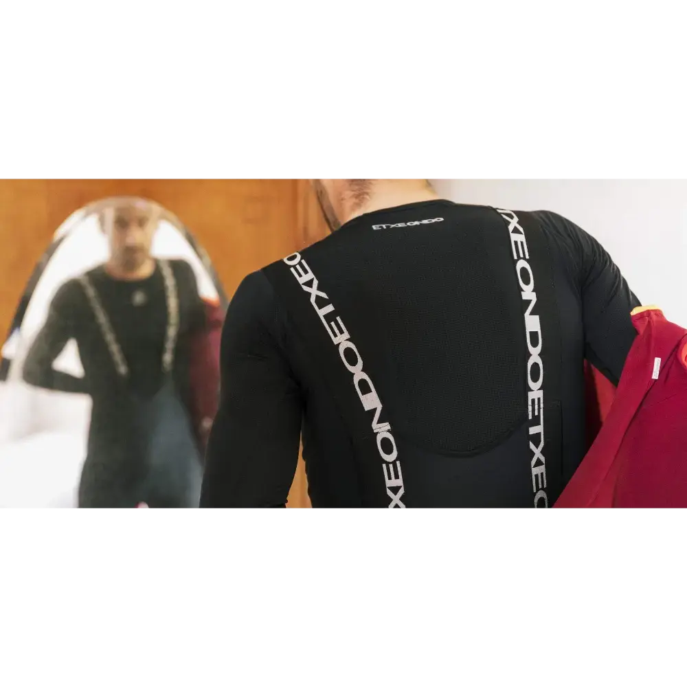 De Etxeondo Exo Hydro Fietsbroek is ontworpen met de zachte, lichte Thermosystem Hydrorepellent stof, die is voorzien van een revolutionaire ultradunne laag waterafstotend materiaal. Deze laag biedt extra bescherming bij nat weer zonder afbreuk te doen aan de thermoregulatie en het ademende vermogen. Om de waterbestendigheid te maximaliseren, zijn het aantal naden verminderd en is het borduurwerk aan de achterkant verwijderd. Reflecterende details verhogen de zichtbaarheid en veiligheid op de weg bij weinig licht. Deze technologie, die zich bewezen heeft in de professionele koersen, is nu beschikbaar voor elke wielrenner.
