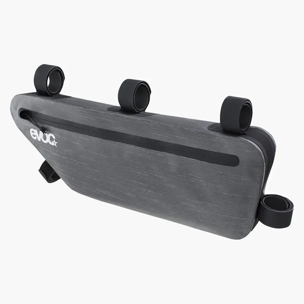 Je volgende rit staat al gepland, maar je weet niet waar je je regenjas, eten etc. moet laten? Met de praktische Evoc Framepack WP M frametas krijg je maximale extra opbergruimte voor elk fietsavontuur waarbij je wat meer spullen mee wilt nemen. Hij is licht, gemakkelijk en veilig te bevestigen aan verschillende framevormen en noch regen, modder of vuil kan de inhoud van uw tas in het minst beschadigen. En het beste van alles: dankzij de gemakkelijk bereikbare, wijd opengaande ritsen heb je altijd gemakkelijk toegang tot je spullen, zelfs tijdens het rijden! Om krassen op de lak te voorkomen, worden transparante framebeschermingsstrips meegeleverd en kunnen de klittenbanden individueel op maat worden gesneden. De Framepack is verkrijgbaar in maat S met een inhoud van 1,5 liter en in maat M met een inhoud van 3,5 liter.