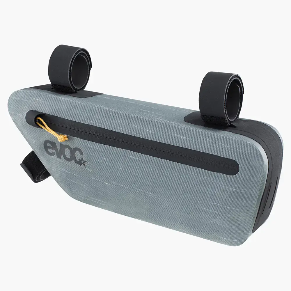 Je volgende rit staat al gepland, maar je weet niet waar je je regenjas, eten etc. moet laten? Met de praktische Evoc Framepack WP S frametas krijg je maximale extra opbergruimte voor elk fietsavontuur waarbij je wat meer spullen mee wilt nemen. Hij is licht, gemakkelijk en veilig te bevestigen aan verschillende framevormen en noch regen, modder of vuil kan de inhoud van uw tas in het minst beschadigen. En het beste van alles: dankzij de gemakkelijk bereikbare, wijd opengaande ritsen heb je altijd gemakkelijk toegang tot je spullen, zelfs tijdens het rijden! Om krassen op de lak te voorkomen, worden transparante framebeschermingsstrips meegeleverd en kunnen de klittenbanden individueel op maat worden gesneden. De Framepack WP is verkrijgbaar in maat S met een inhoud van 1,5 liter en in maat M met een inhoud van 3,5 liter.