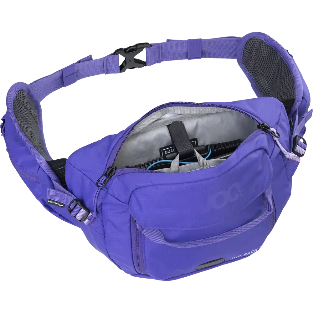 De Evoc Hip Pack Pro 3L Heuptas is ideaal als je geen rugzak mee wil nemen, maar wel een paar essentiƫle spullen wil vervoeren. In de verschillende vakjes, met en zonder ritssluiting, heb je plek voor bijvoorbeeld je telefoon, een energiereep en je sleutels. De heupband kun je verstellen met een gespsluiting, zodat hij altijd goed aansluit om jouw lichaam. Dankzij het Air Flow Contact System en het mesh materiaal heeft de heuptas een hoog ademend vermogen.