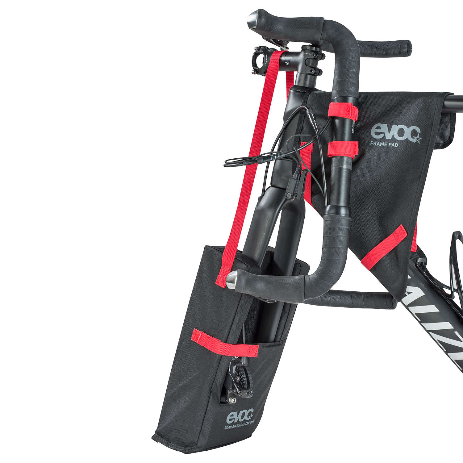 De Evoc Road Bike Adapter is een ideaal accessoire om te gebruiken bij het vervoeren van jouw race- of triathlonfiets. Deze functionele adapter beschermt jouw voorvork tegen beschadigingen en is ideaal te combineren met de populaire Evoc Travel Bags. De adapter is voorzien van een verstelbare band waarmee je de adapter perfect op jouw fietsmaat kunt afstellen.