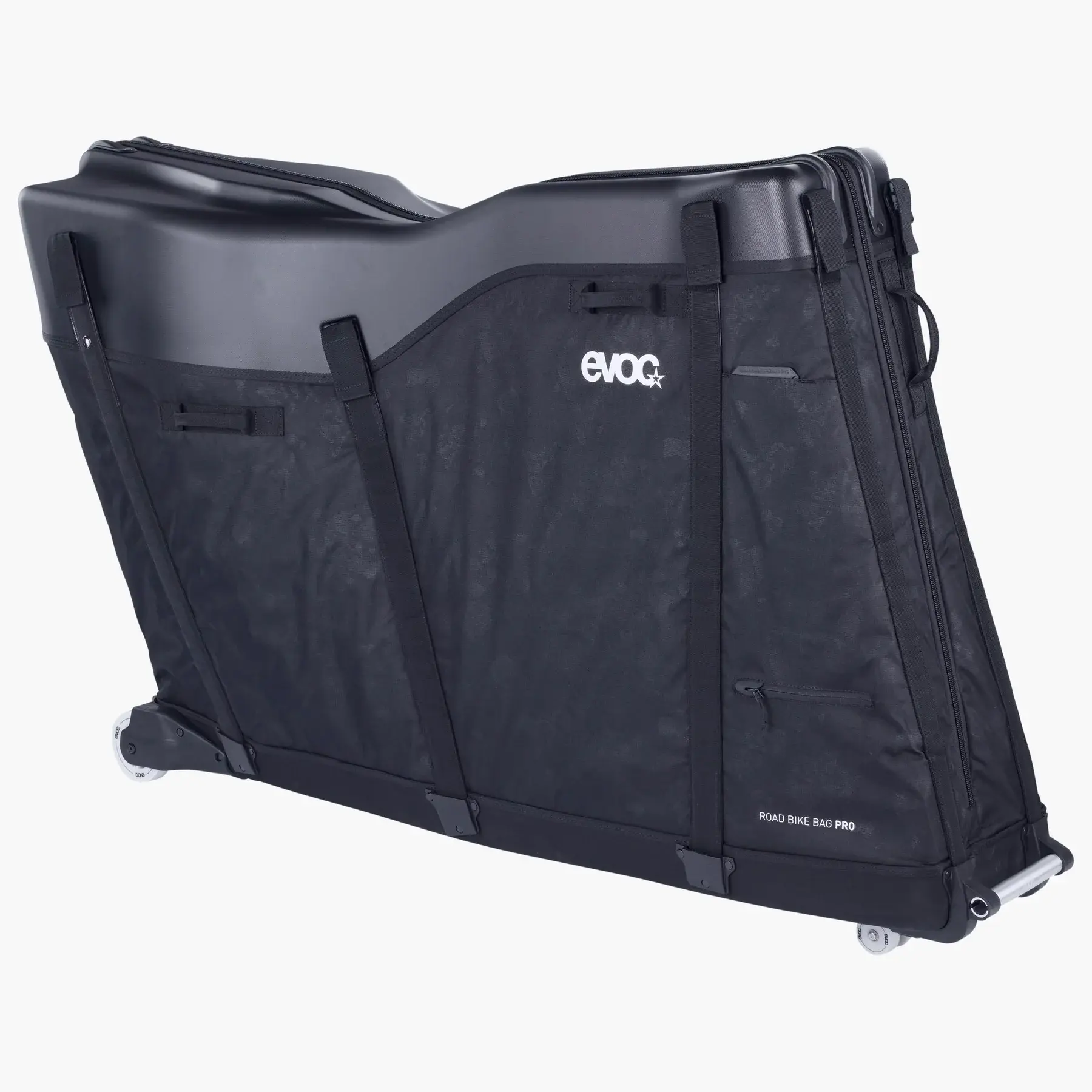 Met de Evoc Road Bike Bag Pro breng je jouw racefiets of triatlonfiets veilig en moeiteloos naar elke bestemming. Het grootste voordeel van deze hoogwaardige transporttas is dat deze volledig 'Bike Fitting Proof' is: je kunt je fiets inpakken zonder de cockpit, het stuur of de zadelhoogte te hoeven wijzigen. Hierdoor blijft je perfecte afstelling behouden en ben je direct na aankomst klaar voor de start. De hybride constructie combineert de onverwoestbare bescherming van een harde koffer met het lichte gewicht en de flexibiliteit van een softbag. Dankzij de meegeleverde Bike Stand Pro staat je fiets rotsvast verankerd, terwijl de Clip-On Wheel 3.0 en het stabiele chassis zorgen voor optimaal gemak op vliegvelden en stations.
