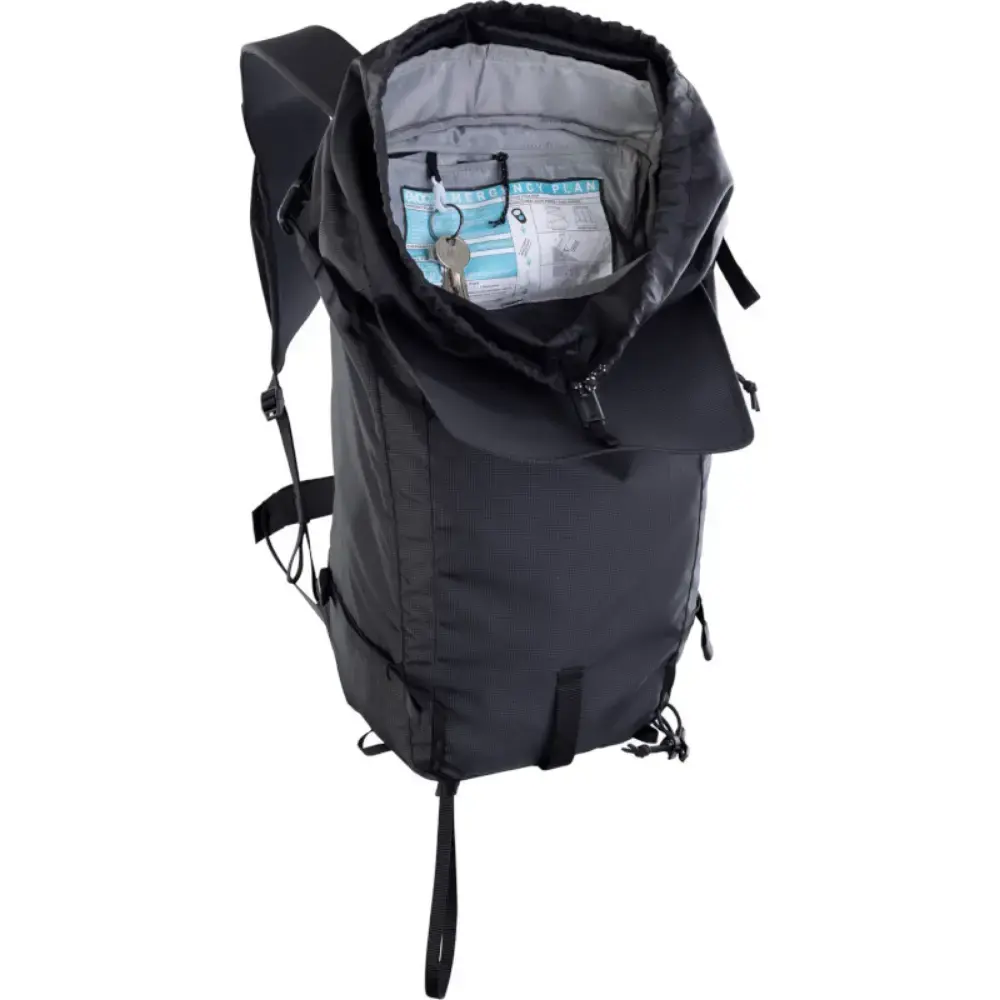 • Vak voor lawine-uitrusting met geïntegreerd noodplan.