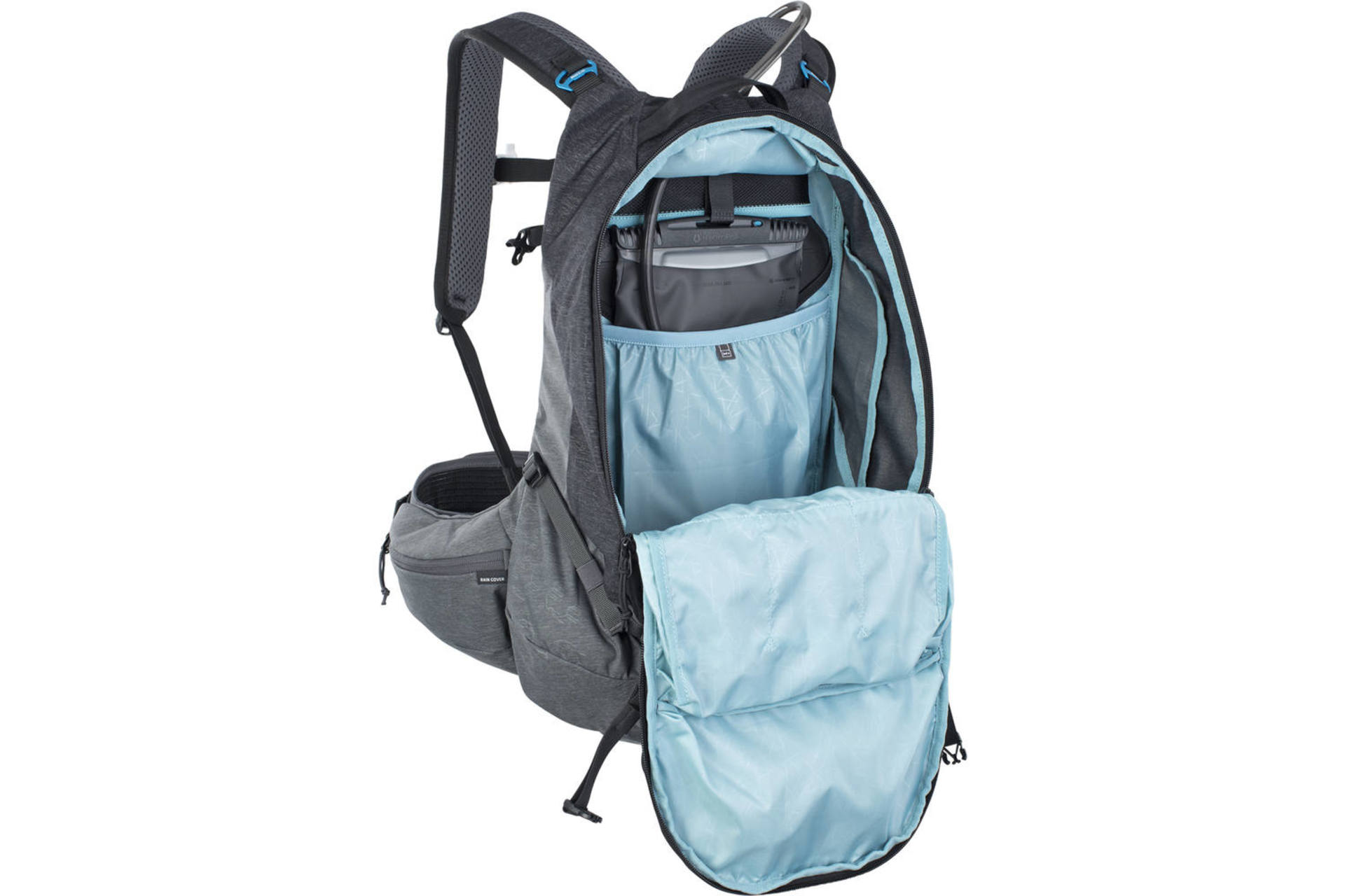 De Evoc Trail PRO Dagrugzak heeft een inhoud van 26 liter en biedt een heel nieuw niveau van bescherming. Het beste draagcomfort dat je je kunt voorstellen in een lichtgewicht beschermende rugzak. Door de ergonomische, naadloze schouderbanden en extra wijde heupriem met AIROFLEX voelt de rugzak ‘body hugging’ aan. Op je rug zit de Liteshield Plus bescherming van 168 gram, die ervoor zorgt dat de tas perfect aansluit op jouw rug, zodat je zo aerodynamisch mogelijk op de fiets zit. Deze protector biedt 95% schokabsorptie bij een onverhoopte val. De tas bestaat uit twee grotere vakken en heeft genoeg kleine vakjes aan de voorkant, zijkant en aan de heupband. De tas blijft goed op zijn plek door de heup- en borstband. Een perfecte tas voor jouw mountainbike- of gravelrit!