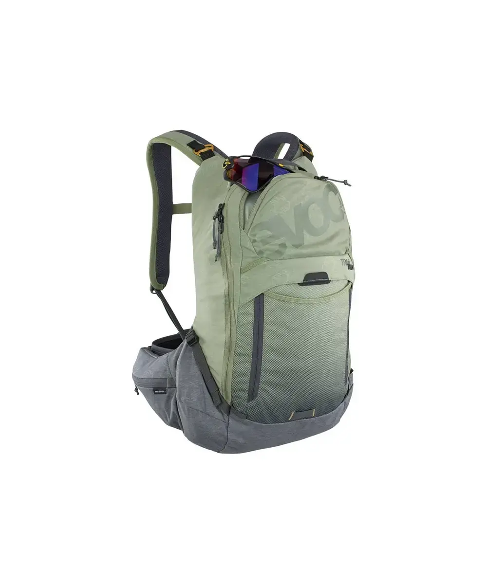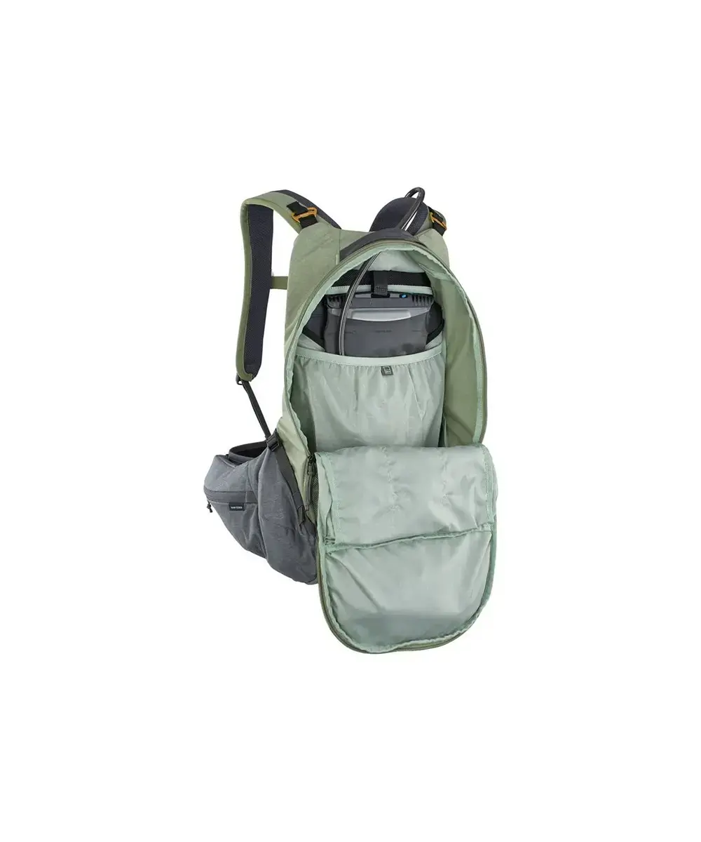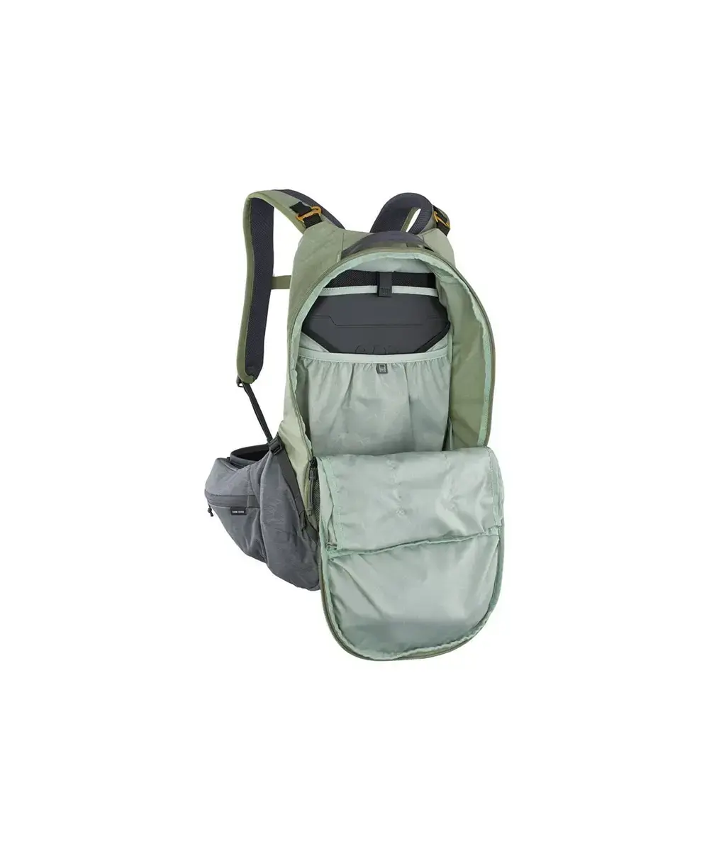 De Evoc Trail PRO Dagrugzak heeft een inhoud van 10 liter en heeft een heel nieuw niveau van bescherming. Het beste draagcomfort dat je je kunt voorstellen in een lichtgewicht beschermende rugzak. Door de ergonomische, naadloze schouderbanden en extra wijde heupriem met AIROFLEX voelt de rugzak ‘body hugging’ aan. Op je rug zit de Liteshield Plus bescherming van 168 gram, die ervoor zorgt dat de tas perfect aansluit op jouw rug, zodat je zo aerodynamisch mogelijk op de fiets zit. De tas bestaat uit twee grotere vakken en heeft genoeg kleine vakjes aan de voorkant, zijkant en aan de heupband. De tas blijft goed op zijn plek door de heup- en borstband. Een perfecte tas voor jouw mountainbike- of gravelrit!