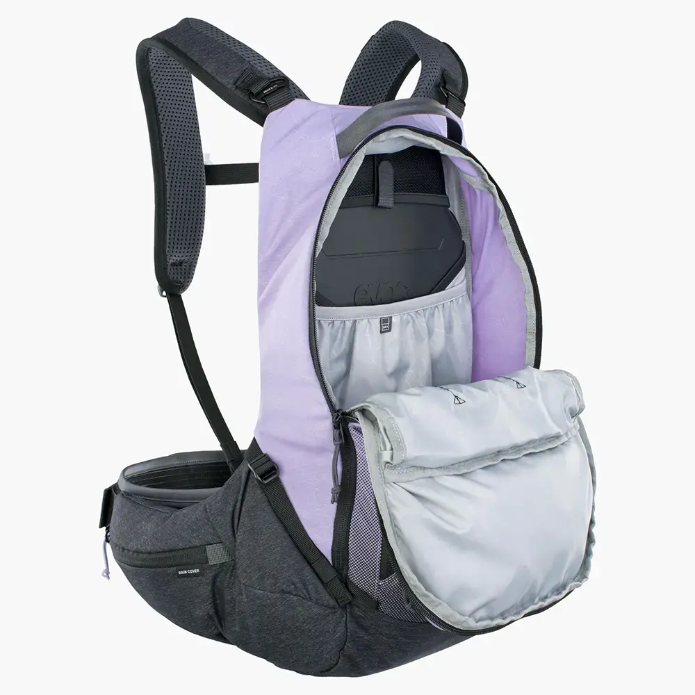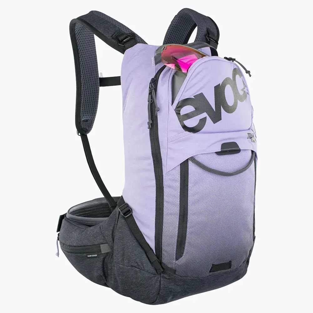 De Evoc Trail PRO Dagrugzak heeft een inhoud van 16 liter en heeft een heel nieuw niveau van bescherming. Het beste draagcomfort dat je je kunt voorstellen in een lichtgewicht beschermende rugzak. Door de ergonomische, naadloze schouderbanden en extra wijde heupriem met AIROFLEX voelt de rugzak aan alsof deze je rug omhelst. Op je rug zit de Liteshield Plus bescherming die ervoor zorgt dat de tas perfect aansluit op jouw rug, zodat je zo aerodynamisch mogelijk op de fiets zit. De tas bestaat uit twee grotere vakken en heeft genoeg kleine vakjes aan de voorkant, zijkant en aan de heupband. De tas blijft goed op zijn plek door de heup- en borstband. Een perfecte tas voor jouw mountainbike- of gravelrit!