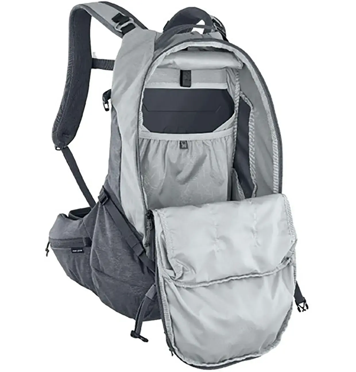 De Evoc Trail PRO Dagrugzak heeft een inhoud van 26 liter en biedt een heel nieuw niveau van bescherming. Het beste draagcomfort dat je je kunt voorstellen in een lichtgewicht beschermende rugzak. Door de ergonomische, naadloze schouderbanden en extra wijde heupriem met AIROFLEX voelt de rugzak ‘body hugging’ aan. Op je rug zit de Liteshield Plus bescherming van 168 gram, die ervoor zorgt dat de tas perfect aansluit op jouw rug, zodat je zo aerodynamisch mogelijk op de fiets zit. Deze protector biedt 95% schokabsorptie bij een onverhoopte val. De tas bestaat uit twee grotere vakken en heeft genoeg kleine vakjes aan de voorkant, zijkant en aan de heupband. De tas blijft goed op zijn plek door de heup- en borstband. Een perfecte tas voor jouw mountainbike- of gravelrit!