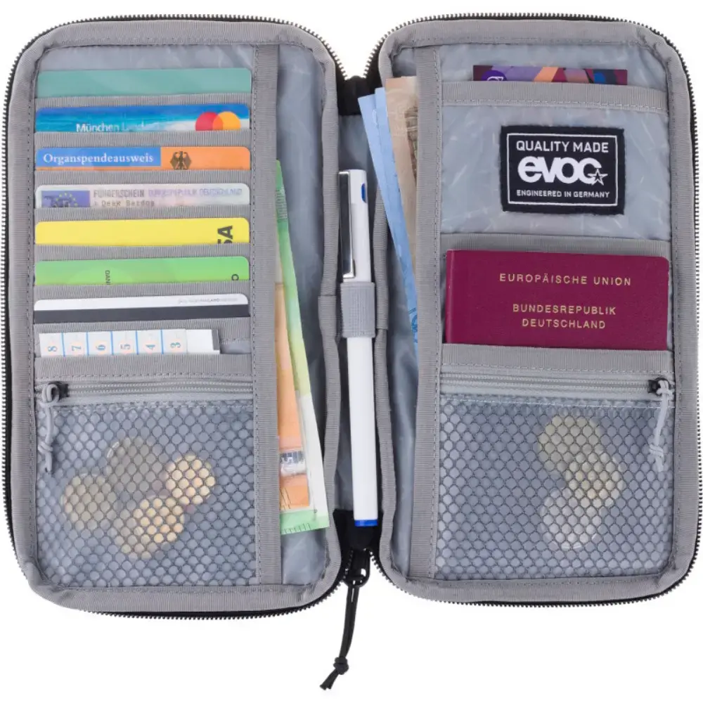 De Evoc Travel Case is de ideale documententas voor georganiseerde reizigers die hun belangrijke reisdocumenten veilig en overzichtelijk willen opbergen. Met meerdere organisercompartimenten biedt deze compacte case voldoende ruimte voor paspoorten, tickets en andere essentiële documenten. Een geïntegreerde pennenhouder zorgt ervoor dat je altijd een pen bij de hand hebt, terwijl het speciale visitekaartvakje je contactgegevens gemakkelijk toegankelijk houdt. Dankzij het slanke en lichte ontwerp past de Travel Case eenvoudig in je rugzak of handbagage, zodat je onderweg altijd goed georganiseerd bent.