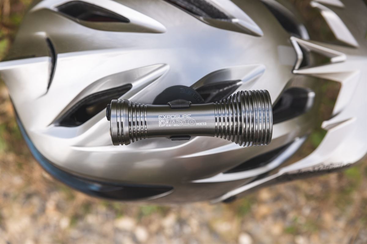 De Diablo Mk12 Koplamp van Exposure Lights heeft drie krachtige leds ingebouwd die een heldere, wijde lichtbundel geven. Indien gewenst kun je door de verschillende standen heen door de lamp alleen maar aan te tikken. Zo hoef je niet opzoek naar de aan-uitknop als hij op je helm zit. De lamp heeft 8 verschillende modi waarin je hem kunt gebruiken. Binnen iedere modus zijn 3 standen beschikbaar: hoog, medium en laag. Zo kun je kiezen hoe je de lamp wilt gebruiken. Wil je dat alle drie de standen veel licht leveren, of moet er juist veel verschil in zitten? In de hoogste modus gaat de lamp bijvoorbeeld 1 uur mee op de hoogste stand, 3 op medium en 6 op laag. In een meer batterijbesparende modus gaat de lamp in de hoogste stand 10 uur mee, medium 18 en laag is een SOS-stand. De lichtopbrengst is dan uiteraard een stuk lager.