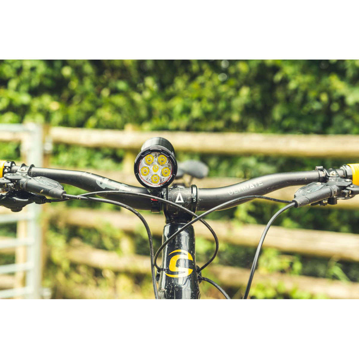 De Exposure Lights Six Pack Mk11 Koplamp is een krachtige koplamp van maar liefst 3600 lumen. Zelfs in donkere omgevingen, zonder lantaarnpalen, is deze lamp uitstekend te gebruiken. De lamp beschikt over de Reflex Technology die ervoor zorgt dat hij de hoeveelheid licht aanpast aan de omgeving. Zo gaat hij feller branden als je hard rijdt en minder fel als je langzamer rijdt. Afhankelijk van de gekozen stand gaat de batterij tot wel 36 uur mee. De batterij is oplaadbaar via USB.