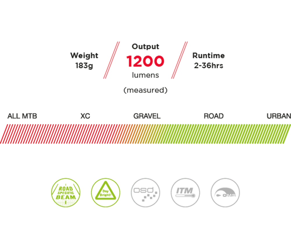 - Onverlichte omgeving race: gebruik op slecht of onverlichte (fiets)paden buiten de bebouwde kom. Geschikt voor racefietsers met hogere snelheid.