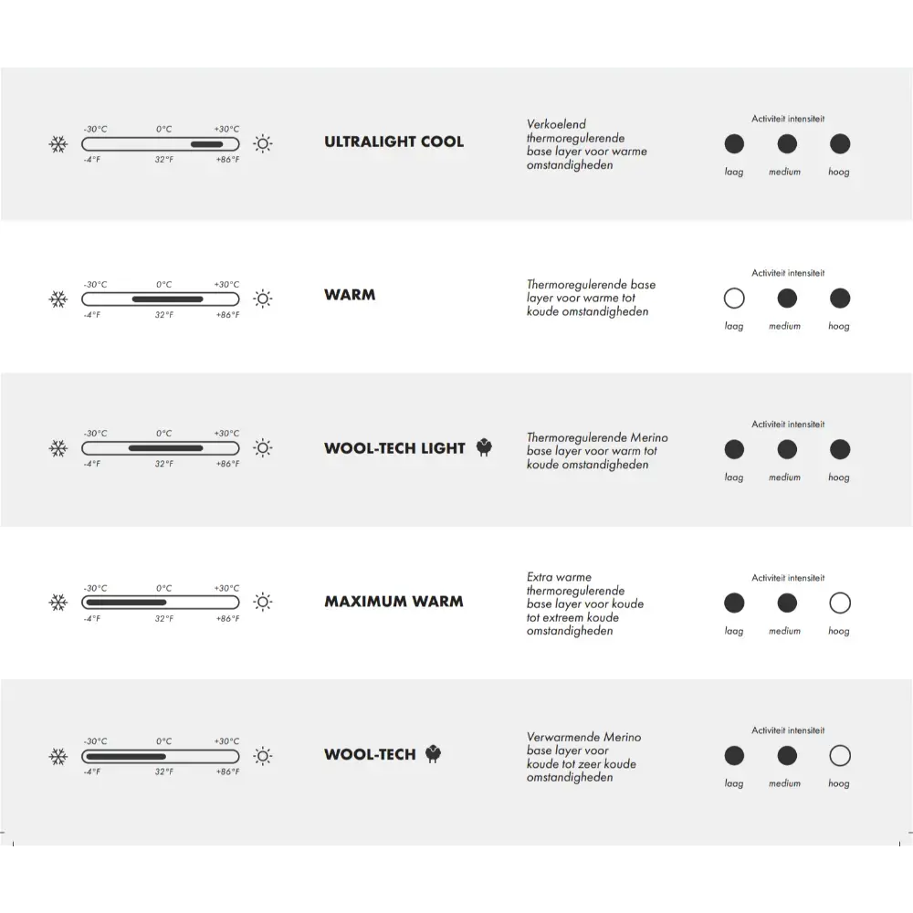 • Breed inzetbare baselayer