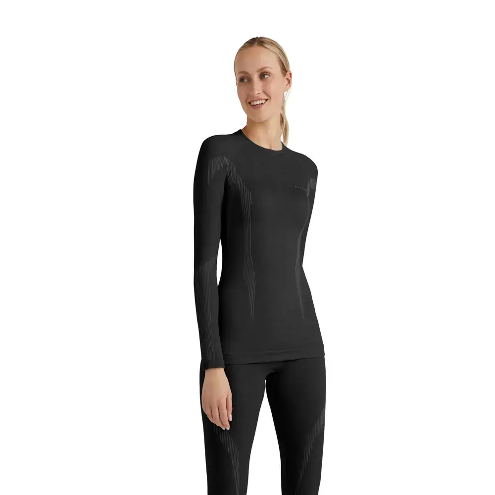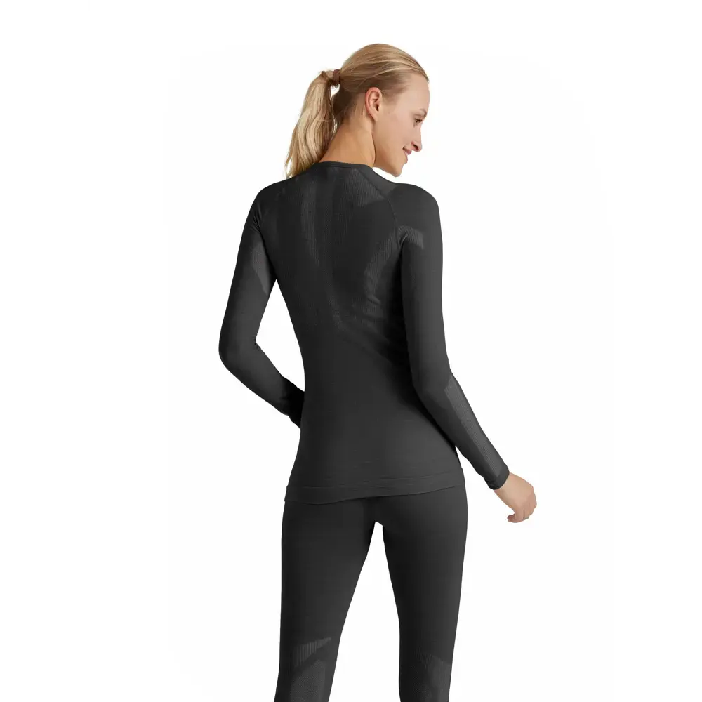 Het Falke Wool-Tech Thermoshirt Lange Mouwen Dames is ontwikkeld voor lage tot gemiddelde intensiteit bij koude tot zeer koude omstandigheden. Dankzij de vochtregulerende 2-laags constructie in een gerecyclede Merino wolmix blijft je lichaam droog en comfortabel, terwijl de natuurlijke geurwerende eigenschappen zorgen dat je fris blijft. Strategisch geplaatste ventilerende en isolerende zones helpen een optimaal lichaamsklimaat te behouden, waardoor energieverlies voor temperatuurregulatie wordt voorkomen. De naadloze, anatomische pasvorm sluit perfect aan op je lichaam en biedt optimale ondersteuning voor sportieve prestaties, zonder irritatie.