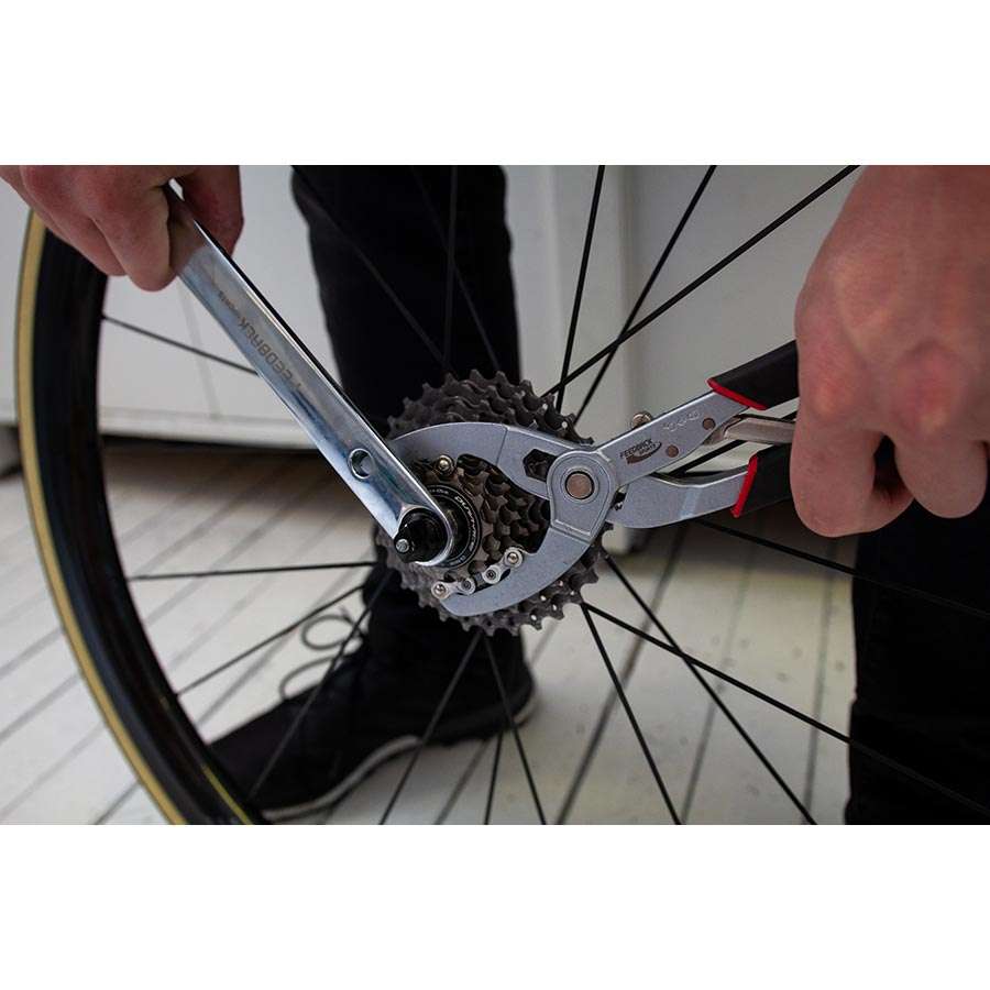 Deze Kettingzweep van Feedback heeft een iets ander ontwerp dan de traditionele kettingzweep. Dit tang-ontwerp zorgt ervoor dat je sneller kan werken en makkelijker en meer kracht kan zetten. het auto-adjust syteem zorgt ervoor dat je iedere tandwiel kan vastpakken en altijd de juiste maat hebt. De kettingzweep is te gebruiken op alle soorten cassettes van 1 tot 12 speed. Het gebruik van hoogwaardig gesmeed staal en stevige rubberen handvat, zorgt voor veel duurzaamheid en veel grip.