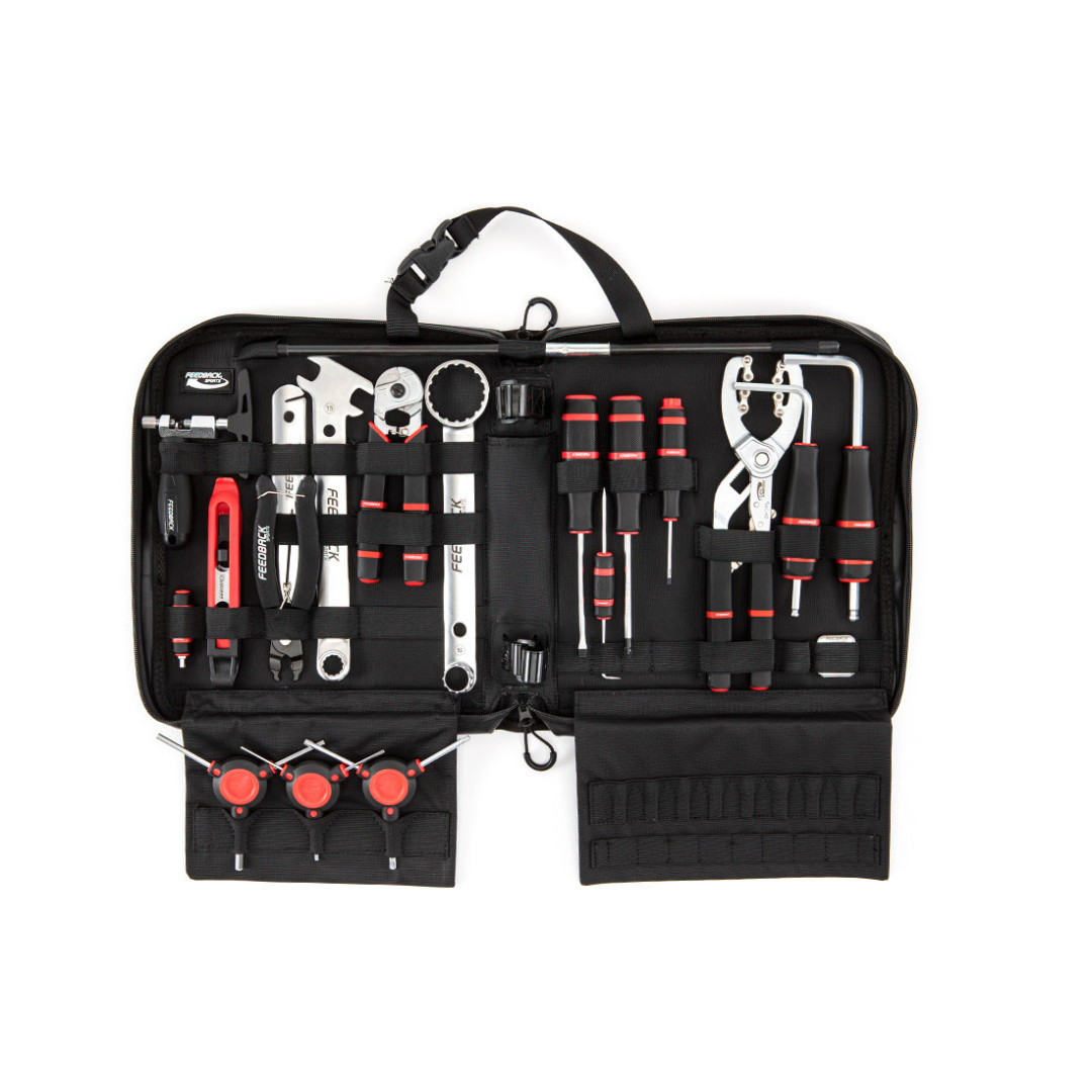 Met deze Team Edition Tool Kit Gereedschapskoffer van Feedback haal je in één klap al het benodigde gereedschap voor het onderhoud van je fiets in huis. Het gereedschap is van professionele kwaliteit en gaat superlang mee. De speciale handgrepen geven je de optimale grip die je nodig hebt tijdens de zware klussen. De set wordt geleverd in een tas die nog extra ruimte biedt voor extra gereedschap en welke tevens is op te hangen aan je workstand. Zo heb je altijd al het gereedschap direct bij de hand.