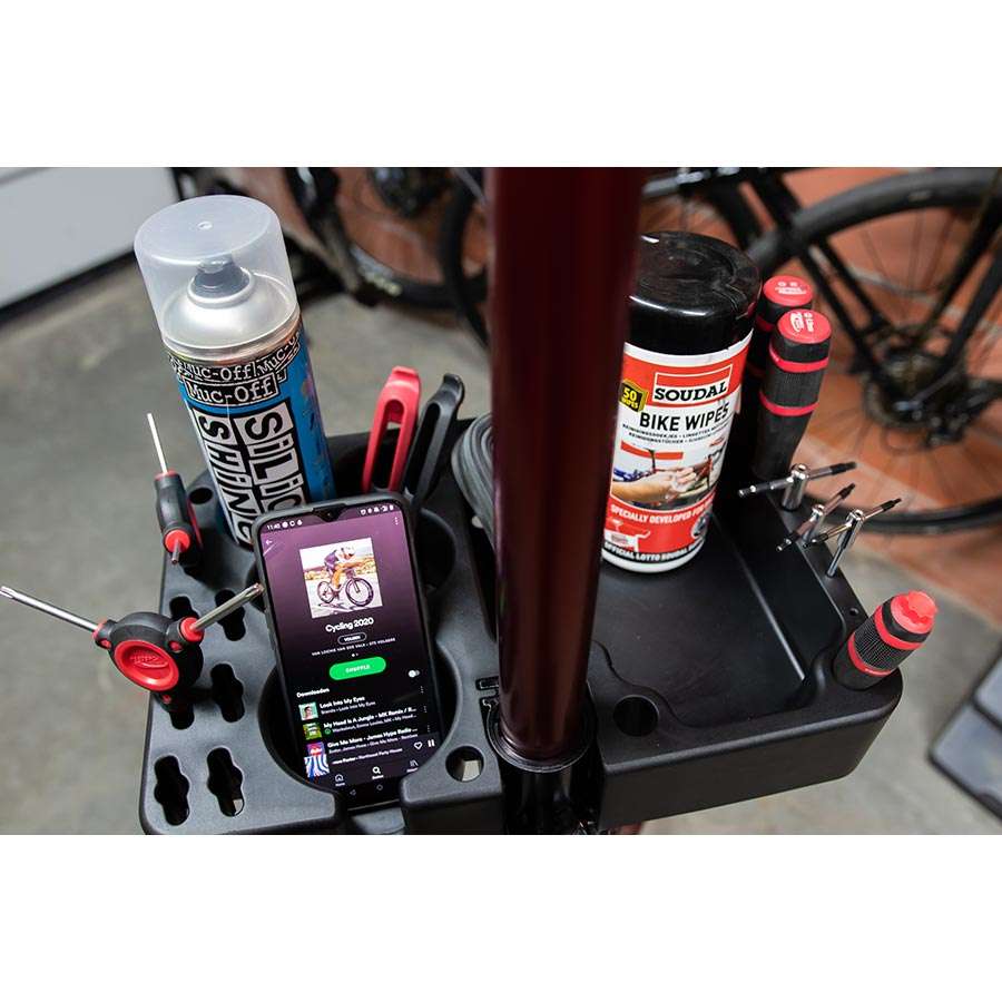 De Tool Tray van Feedback is ontworpen om te bevestigen aan alle workstands van Feedback, deze kan je dus goed gebruiken bij de Feedback Sports Pro Mechanic HD.
