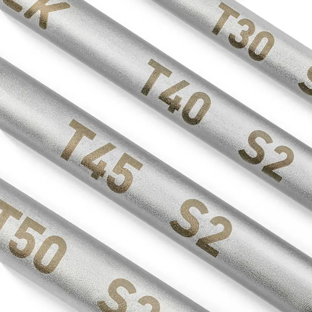 • De set bestaat uit T10, T15, T20, T25, T27, T30, T40, T45, T50