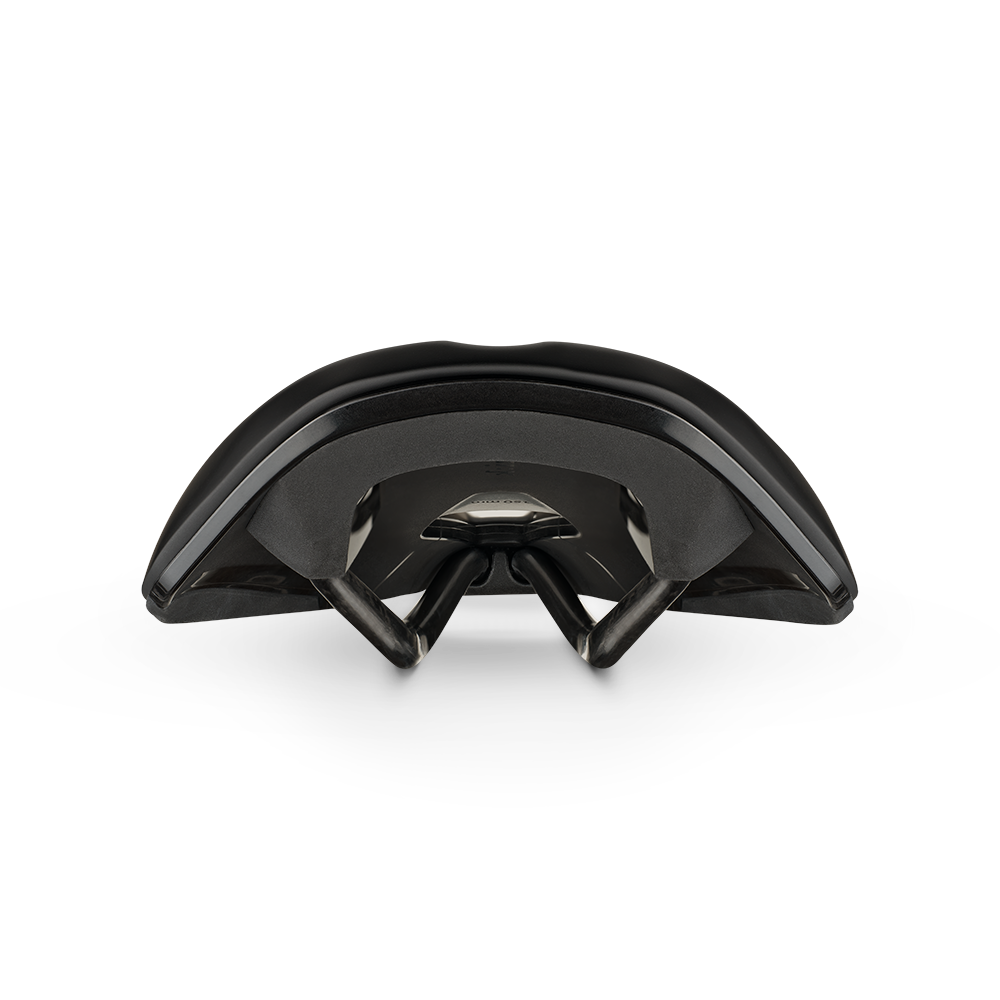 - Verhoogde achterkant, met aflopende neus zorgt voor minder druk en zet je in de juiste houding