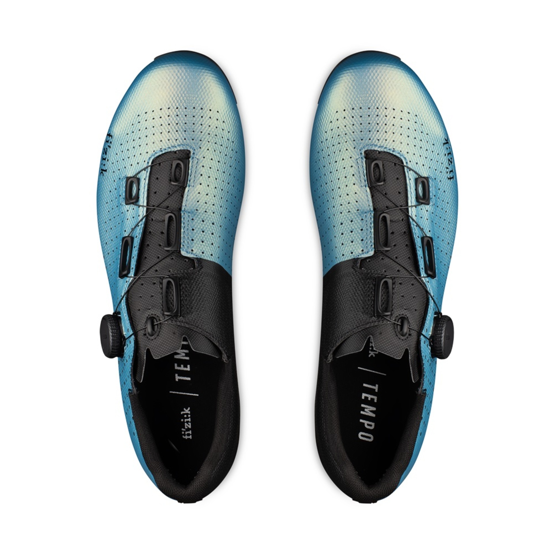 De Fizik Tempo Decos wielerschoenen zijn ontworpen om het midden de vinden tussen comfort, prestaties en essentie. De minimale enkele Boa-sluiting en de stijve carbonzool dragen bij aan die eigenschappen. Je voeten blijven optimale geventileerd door het PU-gelamineerde materiaal met mesh aan de bovenzijde. De niet alleen stijve, maar ook lichtgewicht R2 carbon buitenzool zorgt voor efficiënte krachtoverdracht naar de pedalen. Een brede ventilatieopening en diepe interne kanalen zorgen voor een verkoelende luchtstroom voor een betere temperatuurregeling. De schoenplaatbevestiging is iets verder naar achter geplaatst dan traditioneel gedaan wordt. Dit resulteert in een geoptimaliseerde trapefficiëntie en verminderde druk op de knieën. Met name aero-gerichte rijders hebben hier voordeel aan.