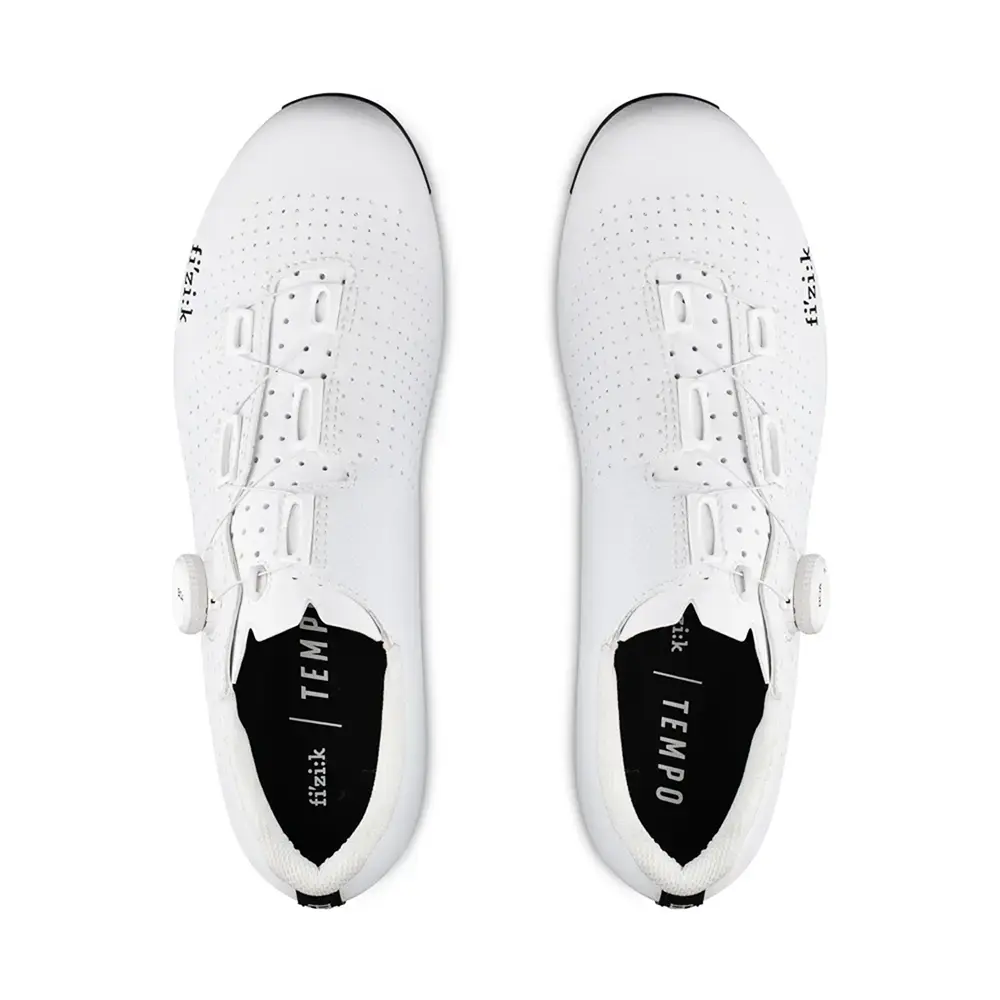 De Fizik Tempo Decos wielerschoenen zijn ontworpen om het midden de vinden tussen comfort, prestaties en essentie. De minimale enkele Boa-sluiting en de stijve carbonzool dragen bij aan die eigenschappen. Je voeten blijven optimale geventileerd door het PU-gelamineerde materiaal met mesh aan de bovenzijde. De niet alleen stijve, maar ook lichtgewicht R2 carbon buitenzool zorgt voor efficiënte krachtoverdracht naar de pedalen. Een brede ventilatieopening en diepe interne kanalen zorgen voor een verkoelende luchtstroom voor een betere temperatuurregeling. De schoenplaatbevestiging is iets verder naar achter geplaatst dan traditioneel gedaan wordt. Dit resulteert in een geoptimaliseerde trapefficiëntie en verminderde druk op de knieën. Met name aero-gerichte rijders hebben hier voordeel aan.