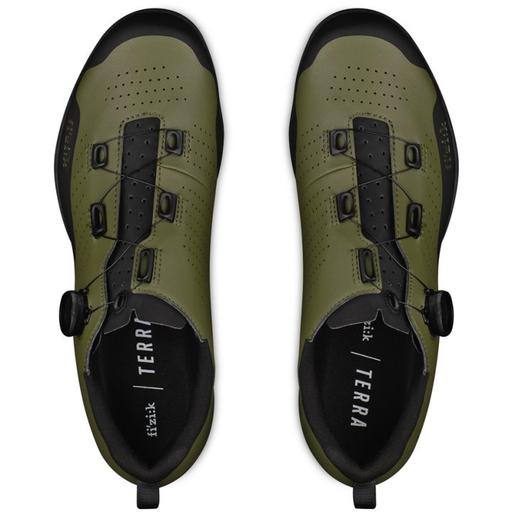 De Terra Atlas van Fizik is de veelzijdige en betrouwbare offroadschoen voor all-terrain, gravel en MTB gebruik. De praktische enkele BOA-sluiting zorgt voor een comfortabel pasvorm en maakt aansnoeren en losmaken met 1 hand gemakkelijk. De schoen is ontwikkeld voor een brede range aan gebruiksopties, van gravel tot crosscountry MTB. De zool is geschikt voor 2-gaats schoenplaatjes zoals SPD. De X5 nylon met rubber zool geeft grip en tractie wanneer je van de fiets bent en efficiëntie tijdens het trappen. Het bovenwerk van de Terra Atlas is goed geventileerd, zonder aan bescherming van je voeten in te leveren met onder andere een verstevigd teenstuk.