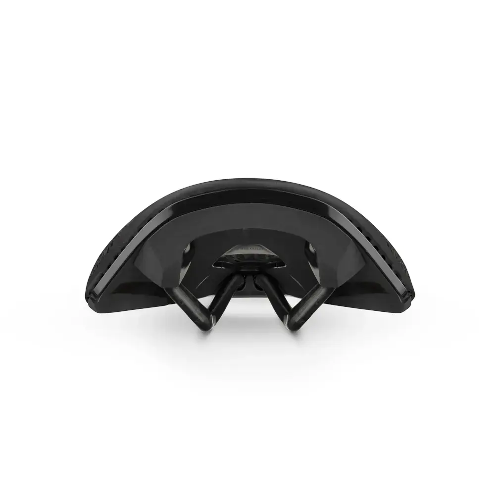 Een geavanceerd 3D-geprint fietszadel met een veelzijdig ontwerp met korte neus en lichtgewicht carbon railsysteem om prioriteit te geven aan comfort, responsiviteit en stabiliteit in verschillende lichaamstypen en rijposities.