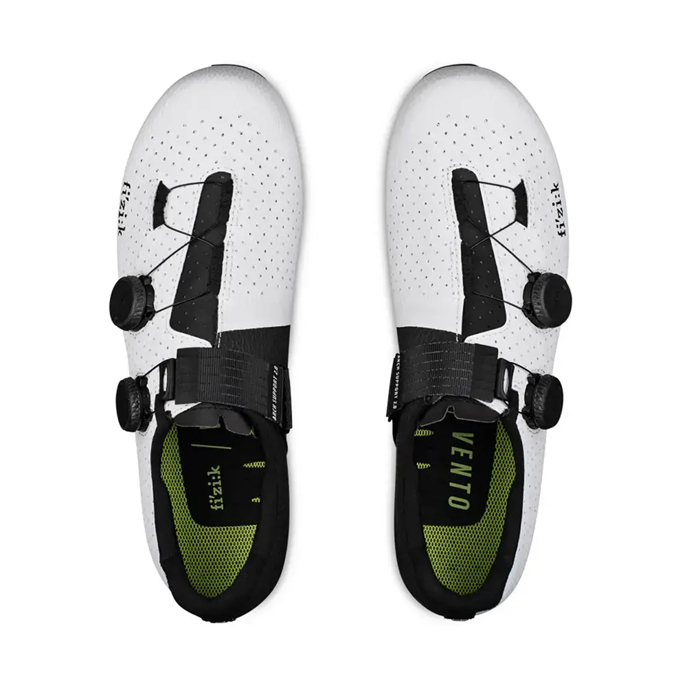 Deze Vento Stabilita Carbon wielerschoenen van Fizik zijn ongekende topschoenen in het racesegment. De schoenen met Dynamic Arch Support 2.0 en carbon buitenzool geven prioriteit aan stabiliteit en prestaties op hoog niveau. Het zogenaamde plantair ondersteuningssysteem is volledig instelbaar, waardoor de ondersteuning bij de voetboog optimaal is. Met de dubbele Li2 Dual ZoneBOA-Fit sluiting stel je de schoenen exact naar eigen pasvorm in. Het bovenwerk is gelamineerd en gecombineerd met een comfortabele mesh. De ultrastijve carbon zool met stijfheidsindex 10 uit 10 is de stijfste uit het Fizik assortiment en zorgt voor maximale krachtoverdracht op de pedalen. Een brede ventilatieopening en diepe interne kanalen zorgen voor een verkoelende luchtstroom voor een betere temperatuurregeling.