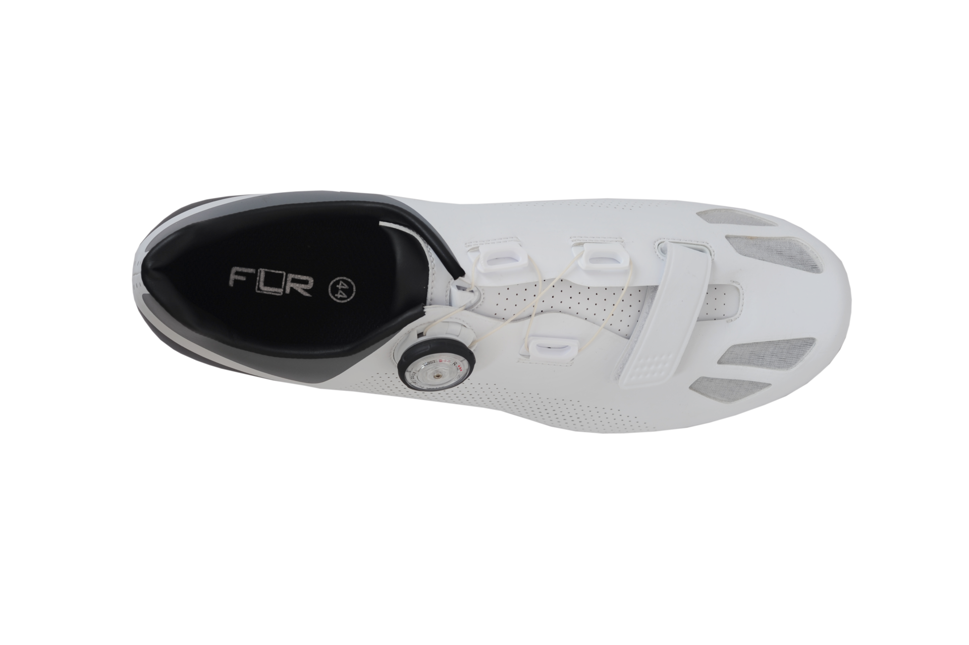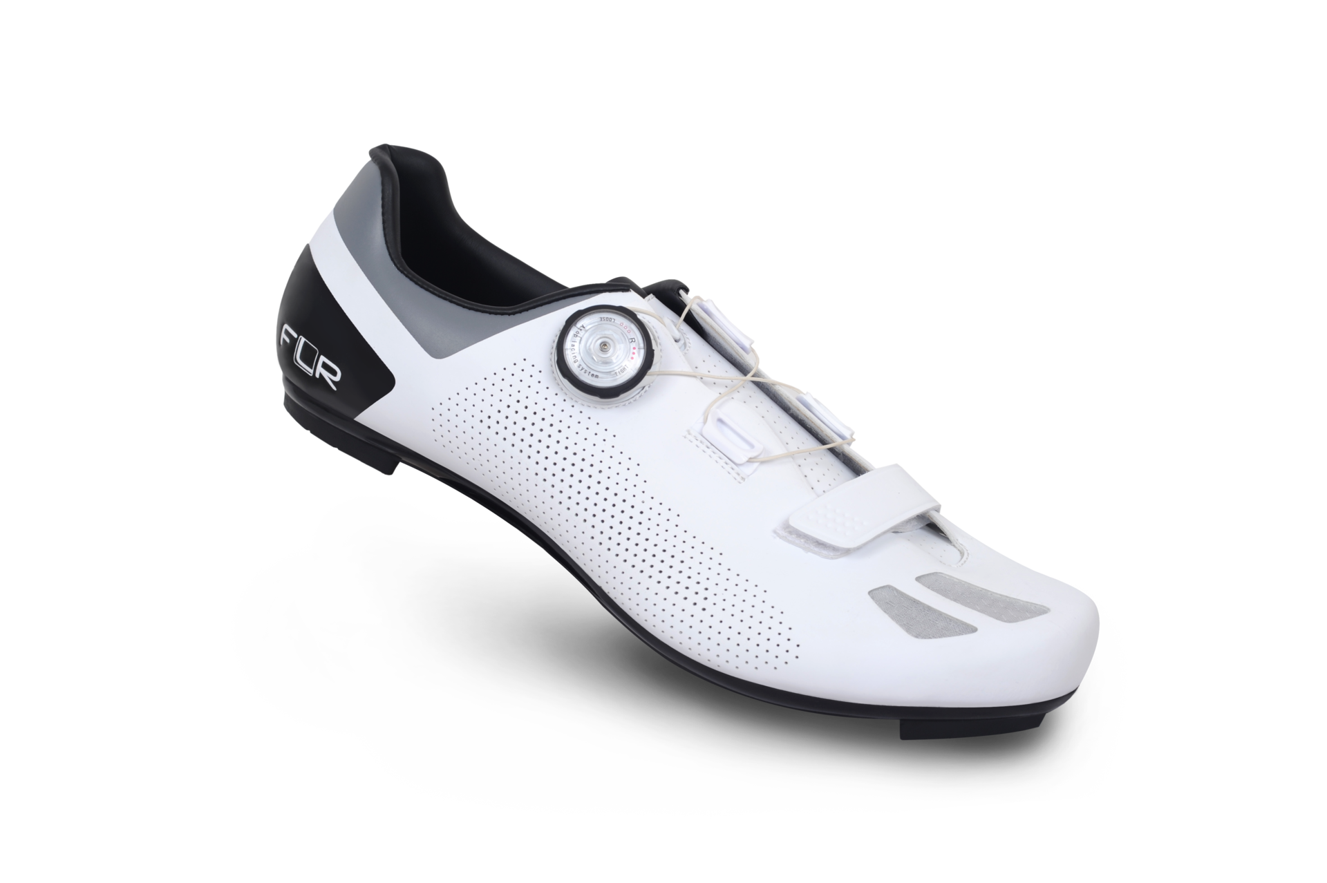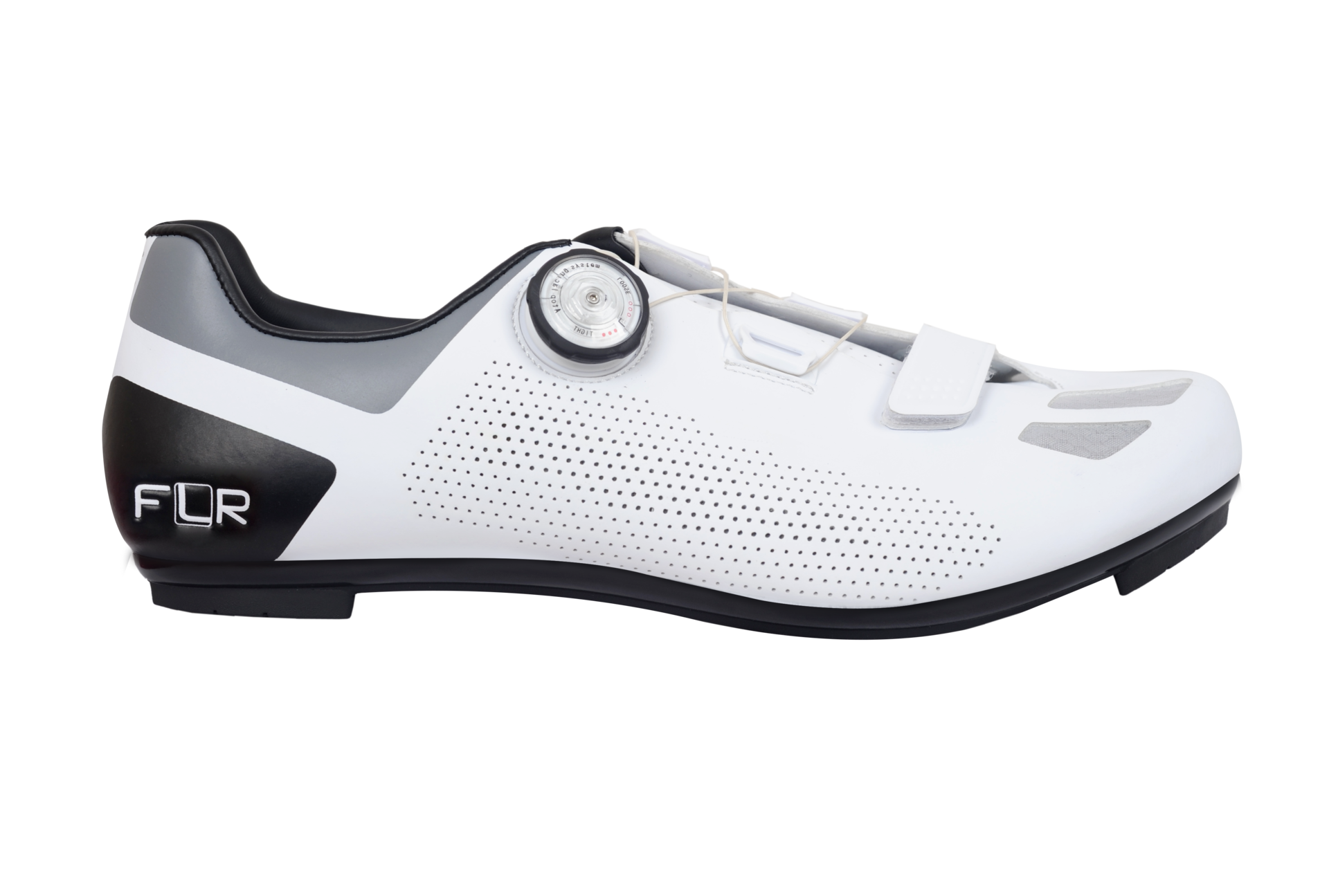 De FLR F-11 Raceschoenen bieden de perfecte mix tussen comfort en optimale prestatie. Deze schoenen hebben een heerlijk comfortabele binnenzijde met zachte wangen. Deze binnenvoering zorgt ervoor dat de schoen niet knelt en heeft een uitstekend ademend vermogen zodat je geen zweetvoeten krijgt. De schoen is vrij stijf, waardoor de kracht die je op je pedalen uitoefent maximaal gebruikt wordt. De schoen heeft twee klittenbandsluitingen en een buckle waarmee je hem perfect strak op je voet trekt. De buitenzool van kunststof is met glasvezel geïnjecteerd. Dit komt de stijfheid van de schoen maar ook de duurzaamheid enorm ten goede.