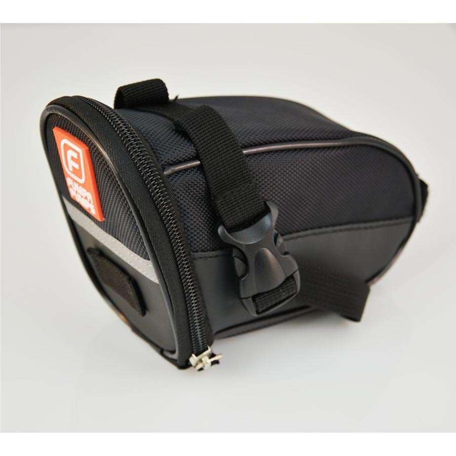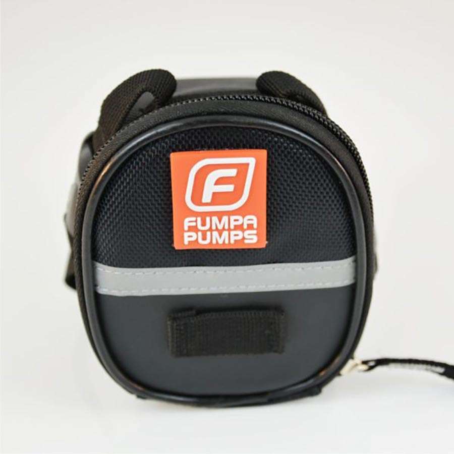 Omdat een Fumpa pump niet handig in je achterzak past, heeft Fumpa Pumps deze zadeltas als optie in het assortiment. De zadeltas is aerodynamisch gevormd en groot genoeg om de Fumpa elekrische pomp te vervoeren (en dus ook de mini-Fumpa). Naast de Fumpa is er nog ruimte voor een reserveband en twee bandelichters. Met de riembevestging blijft de zadeltas vertrouwd en stevig onder je zadel.