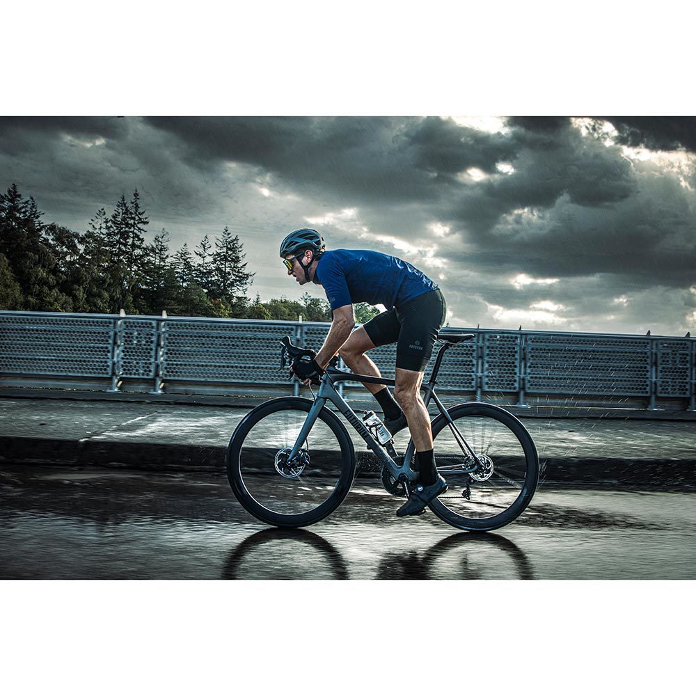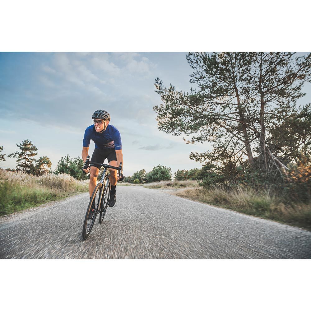 Door het jaar heen komt het regelmatig voor dat je prima met blote armen kunt fietsen, terwijl er een frisse wind staat of er een bui kan vallen. Voor deze dagen heeft FUTURUM dit nieuwe, innovatieve 4 SEASONS PRO Raceday Fietsjack ontwikkeld. Hét antwoord op Nederlands weer. Dit jack brengt de unieke eigenschappen van het veelgeprezen 4 SEASONS Jack naar een nieuw, dunner jack met korte mouwen. Het bijzonder sterk ademende membraan maakt het shirt wind- en waterdicht. Gecombineerd met de dunne binnenvoering en een buitenlaag ontstaat een uitermate comfortabel dragende stof, geschikt voor alle trainings- en wedstrijdintensiteiten. Een duurzame waterafstotende laag (DWR) zorgt ervoor dat waterdruppels van de stof af parelen. Er is veel aandacht besteed aan creëren van een uitstekende pasvorm in de fietshouding, zodat de kraag goed aansluit en er geen irriterende plooien in de stof ontstaan. De getapete naden zorgen ervoor dat water geen kans krijgt om naar binnen te dringen. Door het jack strak rond het lichaam te laten sluiten, komt de ademende werking het best tot zijn recht en ben je goed beschermd tegen wind en water. Het achterpand is verlengd en zo geconstrueerd dat opkruipen wordt tegengegaan. De verborgen YKK-rits is aan de binnenzijde voorzien van een windflap. Naast de 3 open zakken op de achterzijde tref je hier ook een verborgen, waterdicht opbergzakje dat is voorzien van lange rits om makkelijker je kostbare spullen mee te nemen. Met het 4 SEASONS PRO Raceday Fietsjack kun je met een goed gevoel op pad wanneer de temperatuur nog aangenaam is maar je er zeker van wil zijn niet te verregenen of verrast wil worden door een frisse wind. Oók bij zware inspanningen zoals een koers.