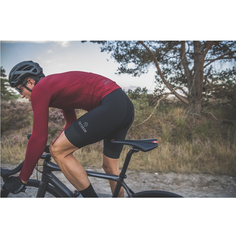 De Joris II Thermo korte broek is een gevoerde versie van de populaire Joris II broek. Deze voering zorgt voor extra comfort op de dagen dat het in de vroege uurtjes nog fris is. In combinatie met een paar beenstukken heb je zo een prettige broek waarmee je de hele dag kunt fietsen en heb je de mogelijkheid om je beenstukken uit te doen wanneer de temperatuur het toelaat. De hoogwaardige Italiaanse stof zorgt voor een optimale pasvorm en is voor een deel gemaakt uit gerecycled materiaal. Aan de broekspijpen zijn extra elastische banden aangebracht die zorgen voor een vloeiende overgang van de broek op het been en dat de broek goed blijft zitten. De elastische bretels met een open structuur, zorgen ervoor dat de broek urenlang prettig draagt. Het FUTURUM COMP zeem geeft een prettige ondersteuning. Door de open structuur en antibacteriële werking blijft het zeem prettig aanvoelen tijdens lange ritten. De reflecterende FUTURUM logo's geven de broek een gave uitstraling en zorgen ervoor dat je nét wat beter zichtbaar bent. Met deze broek ga je comfortabel van huis wanneer een lange winterbroek niet nodig is maar een zomer korte broek nog een beetje te koud.