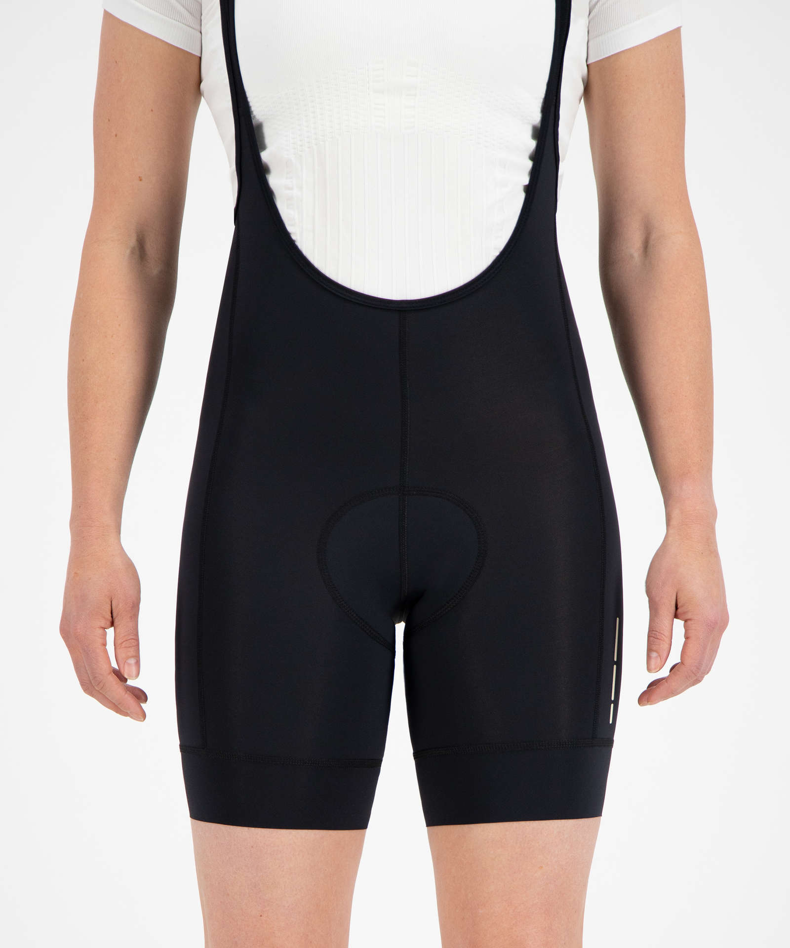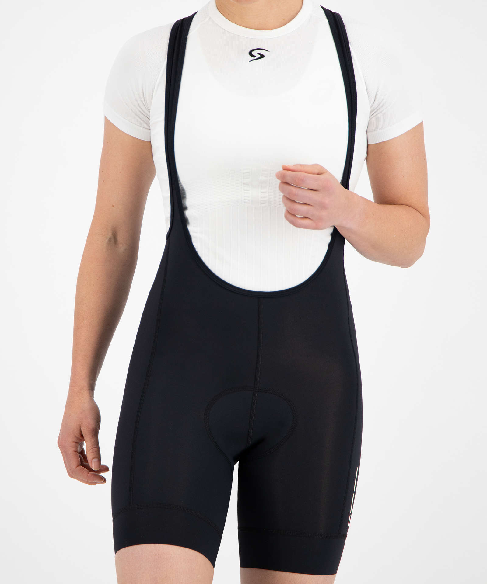 Deze klassiek zwarte FUTURUM Bib Shorts MARA is het basisitem in jouw wielergarderobe. Deze kwalitatief hoogstaande, stijlvolle, zwarte wielerbroek is te combineren met elk wielershirt. De broek is gemaakt van Italiaanse kwaliteitsstoffen die zorgen voor een perfecte pasvorm. De brede elastieke band onderaan de pijp is voorzien van een siliconen gripper, waarmee de wielrenbroek altijd op zijn plaats blijft. Deze fietsbroek is perfect voor warme temperaturen, want het materiaal ademt goed en houdt je koel.