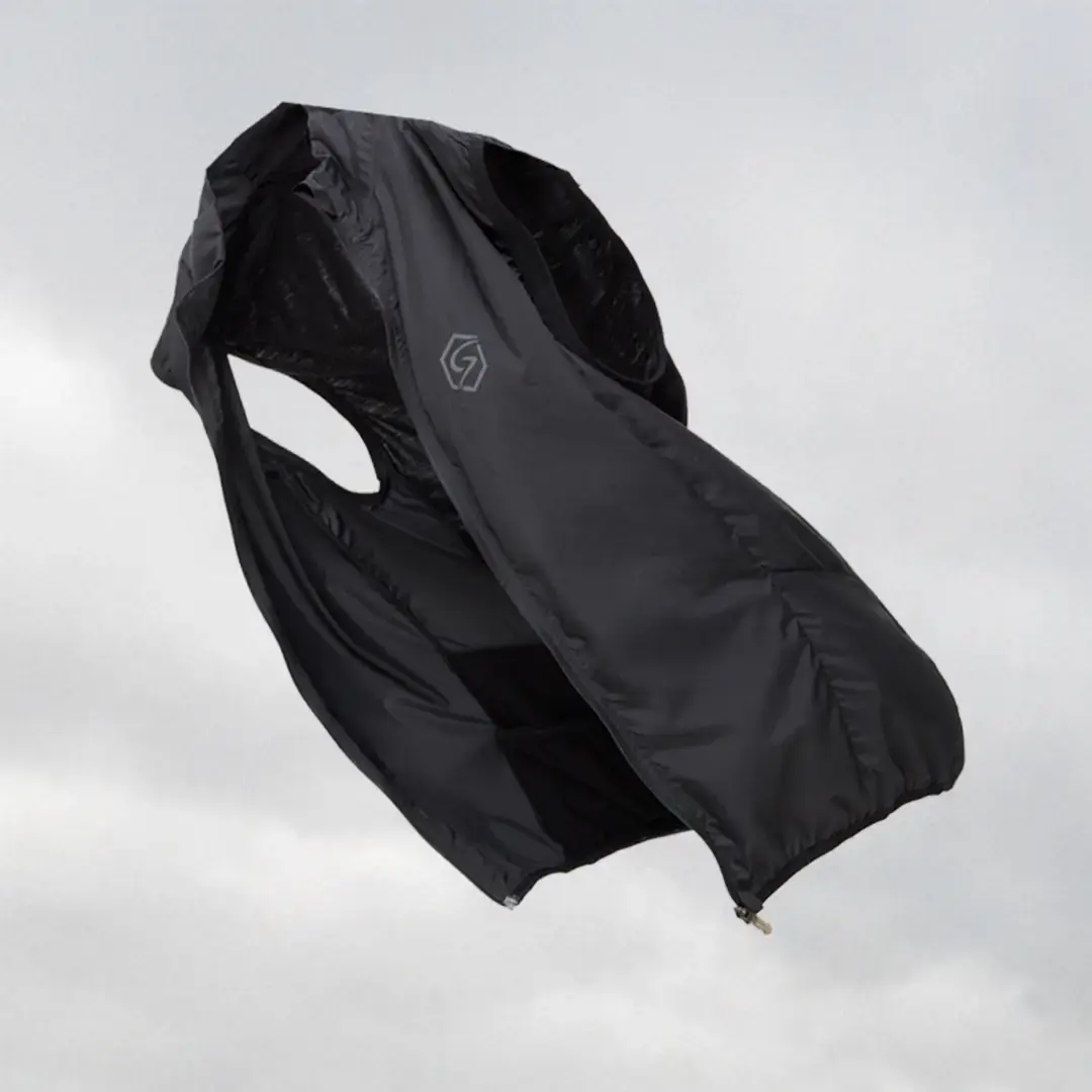 - Compact ingenaaid zakje om het vest in op te vouwen