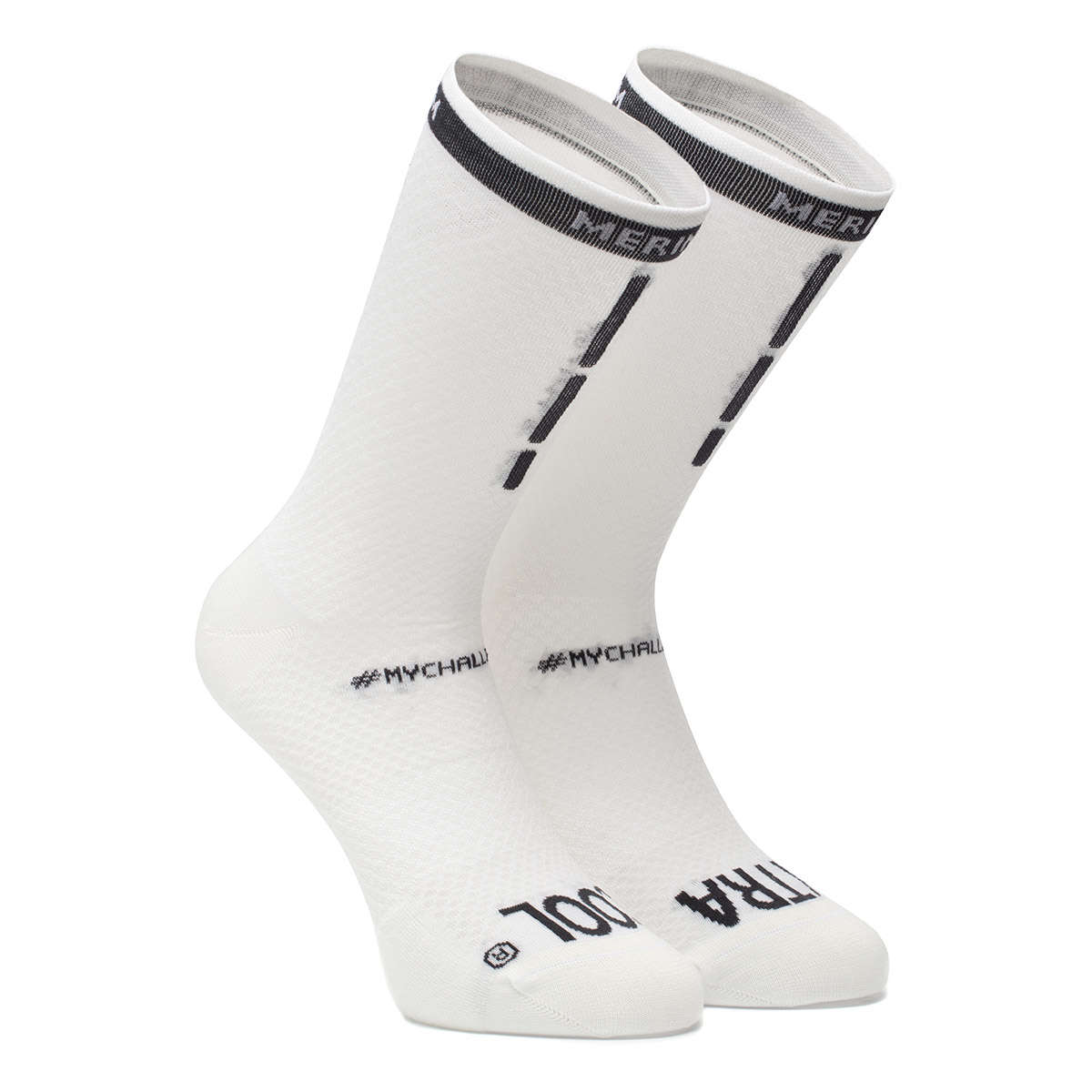 De FUTURUM Merino Xtra Cool fietssokken zijn fantastische sokken voor de dagen dat het heerlijk weer is. Door de temperatuurregulerende werking van de merinowol blijven je voeten aangenaam koel tijdens je rit. De open structuur maakt de sokken lichter en zorgt daarbij voor extra ventilatie. De merinowol is zelfreinigend en vochtregulerend, waardoor je een comfortabel en fris gevoel blijft houden. Door de toevoeging van polyamide aan de voorzijde en de hak zijn de sokken extreem sterk maar bieden ze een ongeevenaard draagcomfort. Je kunt deze sokken natuurlijk in elk seizoen te dragen maar door de speciale structuur zijn ze uitermate geschikt voor de zomerse warme dagen. Het is een absolute aanrader voor fans van merino sokken, de sokken sluiten perfect aan en hebben platte naden zodat deze niet irriteren in de schoenen.