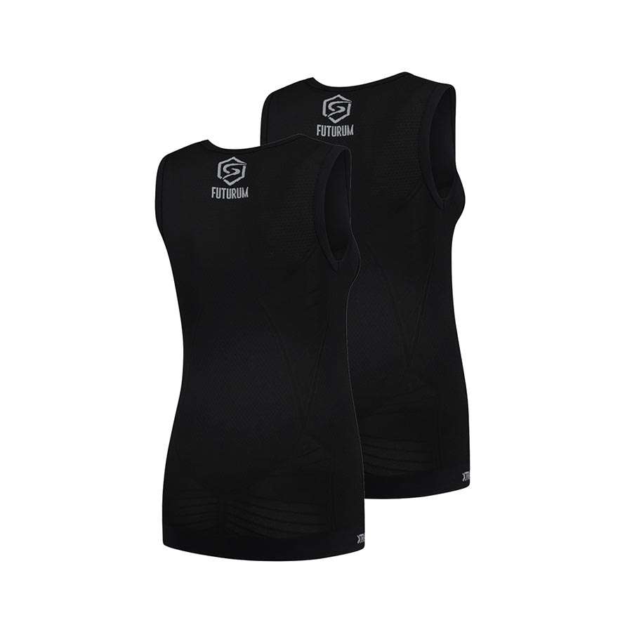 De FUTURUM Base Layer Xtra Cool is hét shirt voor de zomer als de temperaturen behoorlijk oplopen. Dit model zonder mouwen, met het speciale lichte Dryarn materiaal, zorgt ervoor dat je lekker op temperatuur blijft en vocht snel wordt afgevoerd. Deze basislaag past perfect onder zeer strak gesneden fietsshirts en zorgt voor een hoog ademend vermogen en maximaal comfort. Het shirt voelt aan als een tweede huid omdat het door het 4-way stretch materiaal overal prettig aangesloten zit. Het shirt is rondgebreid, wat betekent dat het shirt geen naden heeft en een uitstekende pasvorm. Ook heb je geen last van vervelende naden die irriteren tijdens het sporten. Omdat wij willen bijdragen aan een beter milieu gebruiken we garen uit gerecycled plastic: we like to suffer in nature, but nature doesn't have to suffer for us.