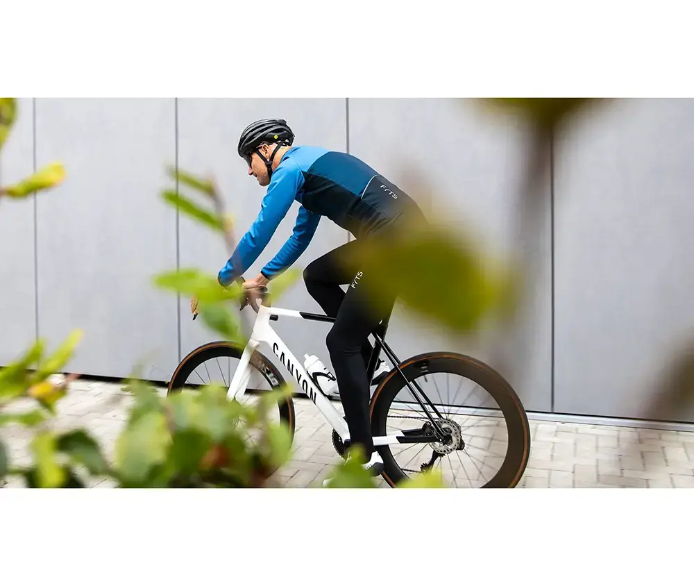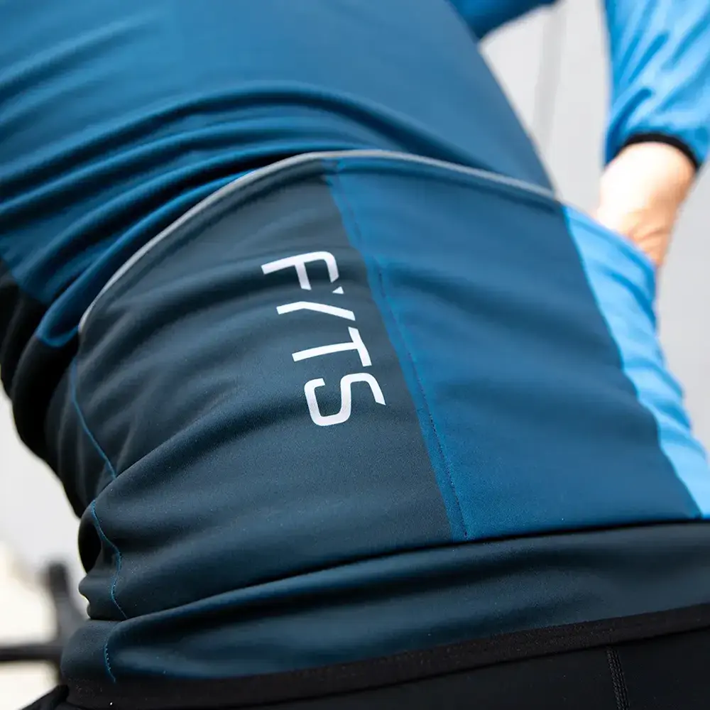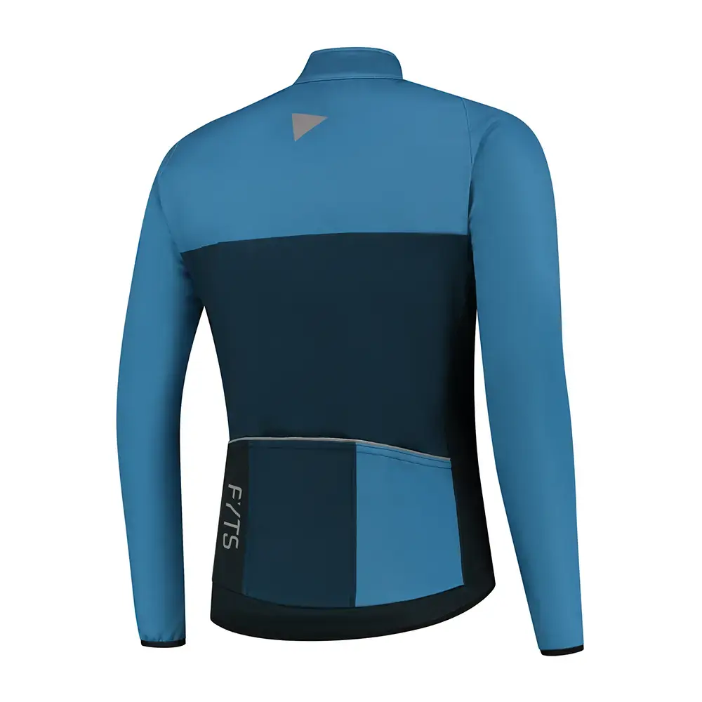 Het FYTS SNLR Winter Fietsjack Thermo is gemaakt om te gebruiken tijdens de koude herfst- en winterdagen. Door de wind- en waterdichte thermostof, zorgt dit jack ervoor dat je op de koude en/of regenachtige dagen comfortabel buiten kunt blijven fietsen. De stof heeft een aangename elasticiteit en dit zorgt ervoor dat het jack mooi aansluit, maar tegelijkertijd de juiste bewegingsvrijheid biedt. De hoge kraag sluit mooi aan om de nek en biedt goede bescherming tegen de gure wind. De 100% PFAS-vrije waterafstotende coating op de buitenzijde van de stof, zorgt ervoor dat regendruppels van de stof af parelen. De regen wordt verder tegengehouden door het waterdichte membraan in de stof. Op de achterzijde zijn drie ruime insteekzakken aangebracht, waarvan de buitenste zijn afgeschuind. Daardoor kun je er veel makkelijker bij tijdens het fietsen. Deze zakken zijn voorzien van reflectie om de zichtbaarheid in de schemer en het donker te vergroten.