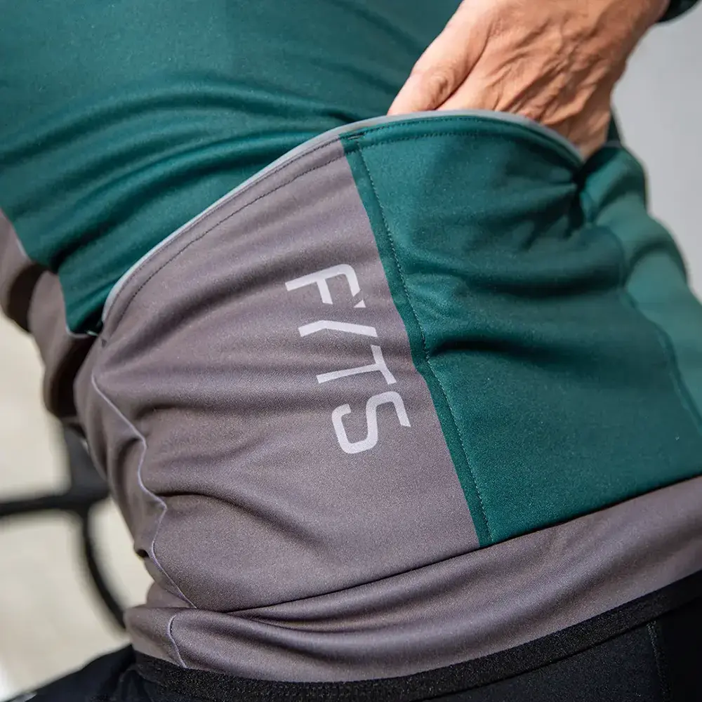 Het FYTS SNLR Winter Fietsjack Thermo is gemaakt om te gebruiken tijdens de koude herfst- en winterdagen. Door de wind- en waterdichte thermostof, zorgt dit jack ervoor dat je op de koude en/of regenachtige dagen comfortabel buiten kunt blijven fietsen. De stof heeft een aangename elasticiteit en dit zorgt ervoor dat het jack mooi aansluit, maar tegelijkertijd de juiste bewegingsvrijheid biedt. De hoge kraag sluit mooi aan om de nek en biedt goede bescherming tegen de gure wind. De 100% PFAS-vrije waterafstotende coating op de buitenzijde van de stof, zorgt ervoor dat regendruppels van de stof af parelen. De regen wordt verder tegengehouden door het waterdichte membraan in de stof. Op de achterzijde zijn drie ruime insteekzakken aangebracht, waarvan de buitenste zijn afgeschuind. Daardoor kun je er veel makkelijker bij tijdens het fietsen. Deze zakken zijn voorzien van reflectie om de zichtbaarheid in de schemer en het donker te vergroten.