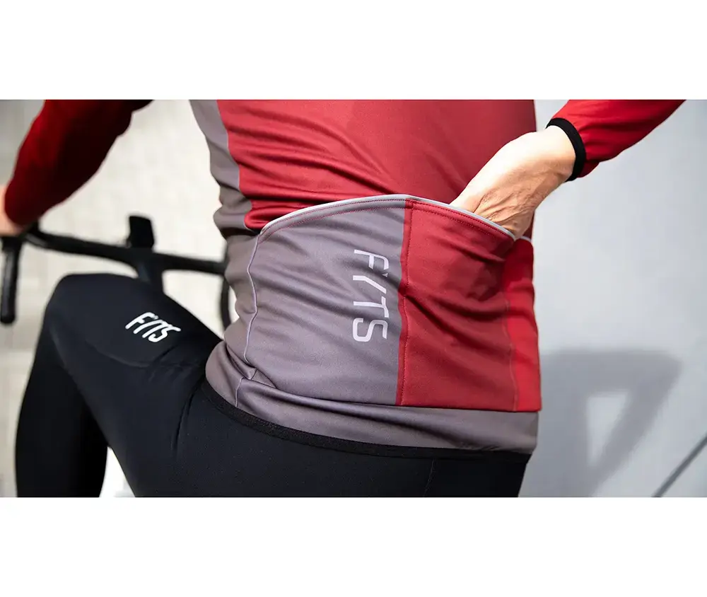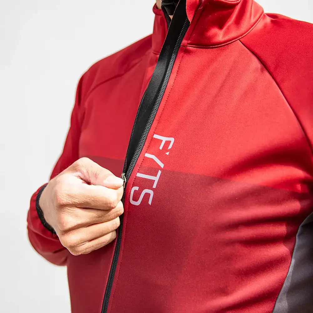 Het FYTS SNLR Winter Fietsjack Thermo is gemaakt om te gebruiken tijdens de koude herfst- en winterdagen. Door de wind- en waterdichte thermostof, zorgt dit jack ervoor dat je op de koude en/of regenachtige dagen comfortabel buiten kunt blijven fietsen. De stof heeft een aangename elasticiteit en dit zorgt ervoor dat het jack mooi aansluit, maar tegelijkertijd de juiste bewegingsvrijheid biedt. De hoge kraag sluit mooi aan om de nek en biedt goede bescherming tegen de gure wind. De 100% PFAS-vrije waterafstotende coating op de buitenzijde van de stof, zorgt ervoor dat regendruppels van de stof af parelen. De regen wordt verder tegengehouden door het waterdichte membraan in de stof. Op de achterzijde zijn drie ruime insteekzakken aangebracht, waarvan de buitenste zijn afgeschuind. Daardoor kun je er veel makkelijker bij tijdens het fietsen. Deze zakken zijn voorzien van reflectie om de zichtbaarheid in de schemer en het donker te vergroten.