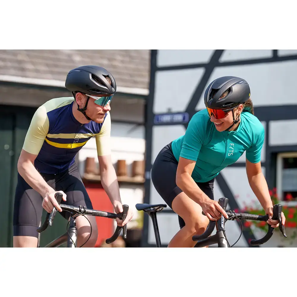 Het FYTS SNLST Fietsshirt is een heel geavanceerd fietsshirt met hoog ademend vermogen. Dat is te danken aan de stof zelf, maar ook aan de opengewerkte stof onder de armen. Hier is veel ruimte voor ademend vermogen en afvoer van zweet. Op de voorzijde is een rits over de volledige lengte aangebracht die verborgen zit in de stof. Daardoor lopen de kleuren op de voorzijde van het shirt mooi door, zonder onderbreking van de rits. De stof is niet bedrukt, maar geverfd. Daardoor blijft de kleur veel langer mooi, ook na meerdere wasbeurten. Op de achterzijde zijn drie insteekzakken aangebracht, waarvan de buitenste zijn afgeschuind. Daardoor kun je er veel makkelijker bij tijdens het fietsen. In de nek zit een speciaal nektape dat irritatie voorkomt. Verdere irritaties worden voorkomen door platgestikte naden in het hele shirt. Een siliconen gripper onderin het shirt houdt hem goed op zijn plek.