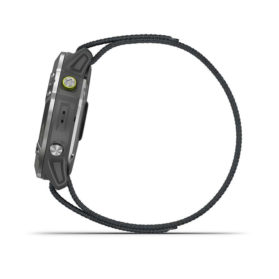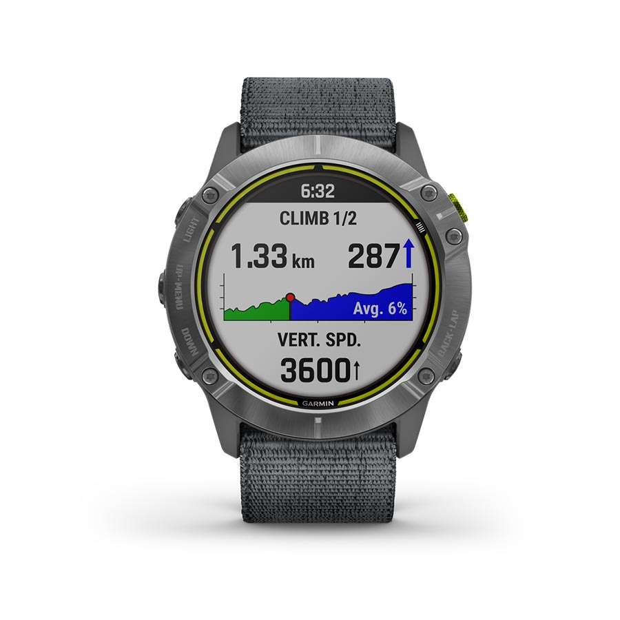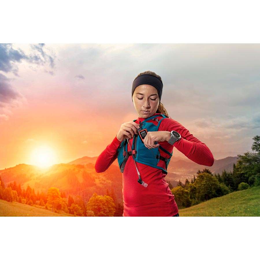 Het Always-On scherm is goed afleesbaar, zelfs tijdens het sporten. De processor is superefficiënt, waardoor jij bezig kunt zijn met je activiteit en niet met de accuduur van je horloge. Het horloge heeft een klein zonnepaneel dat het horloge kan bijladen. Daardoor kan hij tot 80 uur mee gaan in GPS modus en tot 65 dagen bij gebruik als smartwatch. Het horloge heeft de Climb Pro functionaliteiten, waardoor je tijdens het lopen van een trail kunt zien wat voor hoogteprofiel er aan zit te komen. De unieke nylon Ultrafit polsband sluit perfect aan om je polsen waardoor je hem bijna niet voelt zitten.