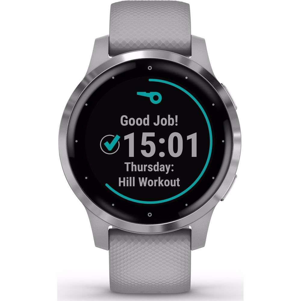 Het nieuwe Garmin Vivoactive 4s Sporthorloge biedt nog meer functies dan zijn voorganger de 3 aldeed. Deze vierde telg in de Vivoactive serie biedt een compleet plaatje over je gezondheid. Zo registreert het horloge dankzij functies als Body battery en Pulse Ox je Stress, energie, slaapritme, hartslag, hydratie en zelfs je ademhaling. Kortom je volledige gezondheid kun je 24/7 monitoren. Naast de gezondheid worden ook al je activiteiten en energieverbruik gemeten. Ideaal voor de gezondheidsfreaks dus! Maar ook de doorgewinterde sporter zal zeer tevreden zijn met dit nieuwe sporthorloge van Garmin. Deze heeft namelijk 20 voor geïnstalleerde sportprofielen zoals fietsen, hardlopen, roeien, zwemmen, krachttraining, Yoga, Golf, Pilates en meer. De fitnessoefeningen worden daarbij ook nog eens geanimeerd op het scherm weergegeven. Ook is er een automatische herhaling instelling voor de fitnessoefeningen. De ingebouwde Garmin coach heeft voorgeprogrammeerde trainingsplannen voor 5K, 10K en de halve marathon, deze passen zich automatisch aan, aan jouw voortgang. Ook wordt je fitnessniveau gemeten aan de hand van je VO2-max en je fitnessleeftijd. Voor diegene die zich op onbekende paden wilt begeven, heeft dit horloge ook nog een thuisbreng functie. Zo kom je altijd weer thuis, ongeacht of je een keer een gewaagde afslag neemt. Deze S versie van de vivoactive heeft een iets slanker ontwerpt, smallere polsband en een kleiner display, waardoor deze geschikter is voor kleinere polsen. Hierdoor heeft het horloge wel een iets kortere batterijduur.